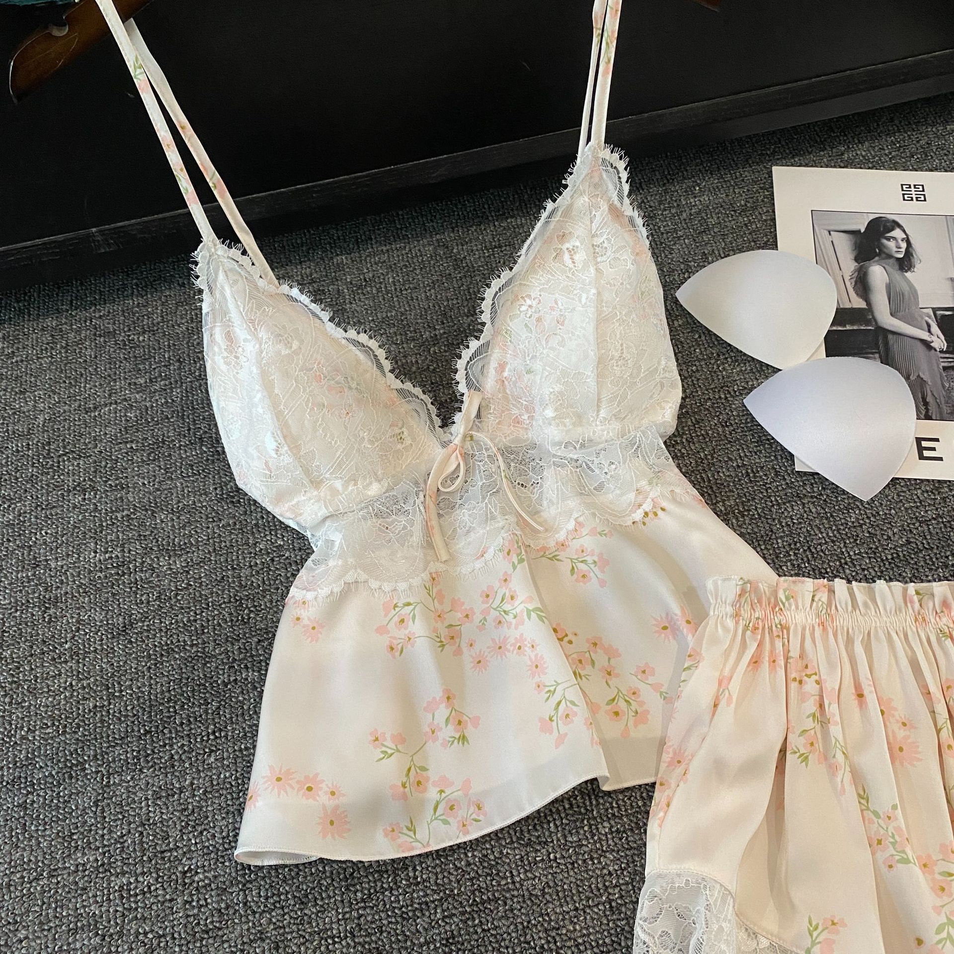冰丝睡衣女夏季少女纯欲吊带短裤家居服套装睡衣女粉嫩性感家居服
