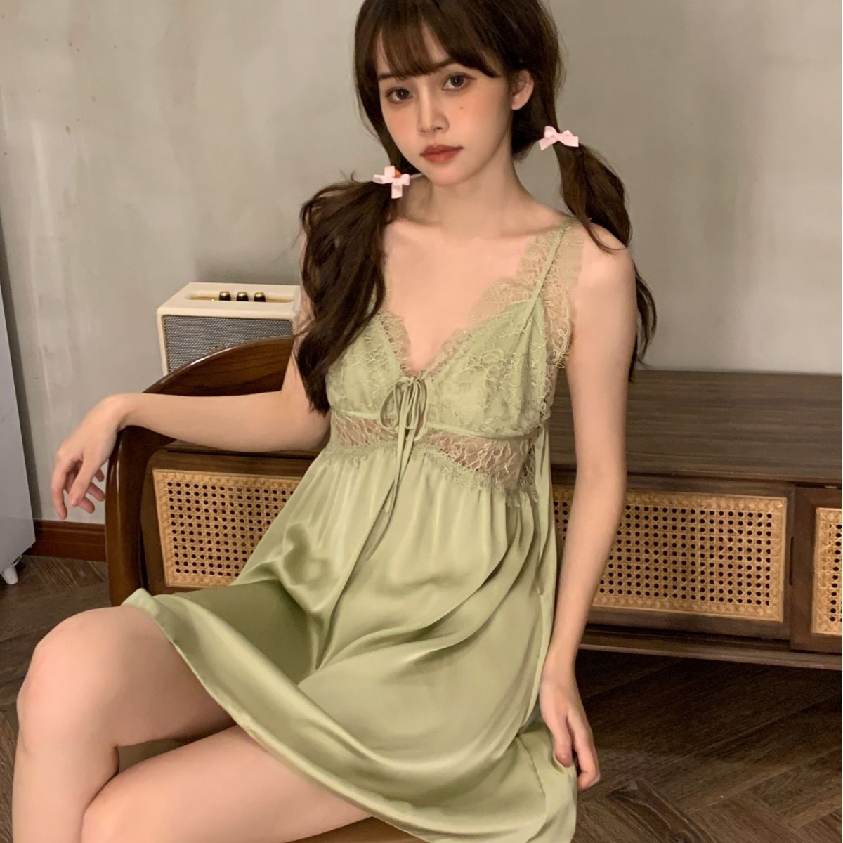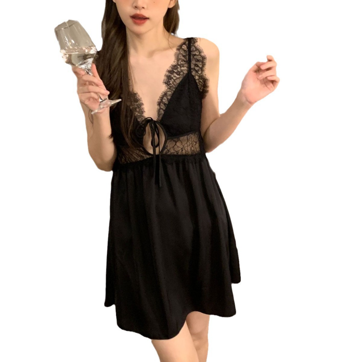 性感睡衣女法式高级感吊带睡裙蕾丝边宫廷风冰丝睡裙家居服网红