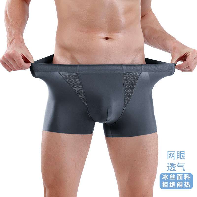 夏季新品冰丝内裤男透气网孔男士平角裤性感无痕男内裤中腰裤头薄