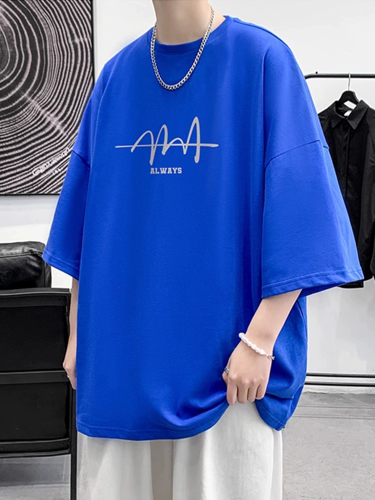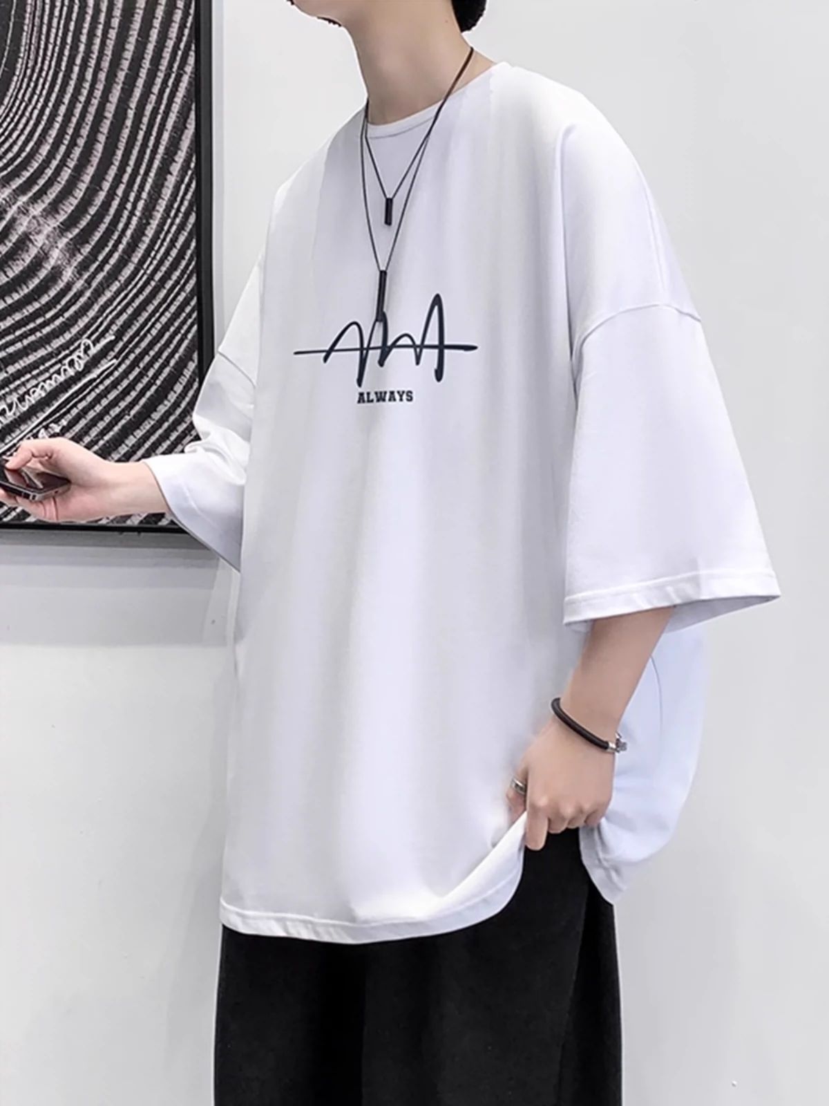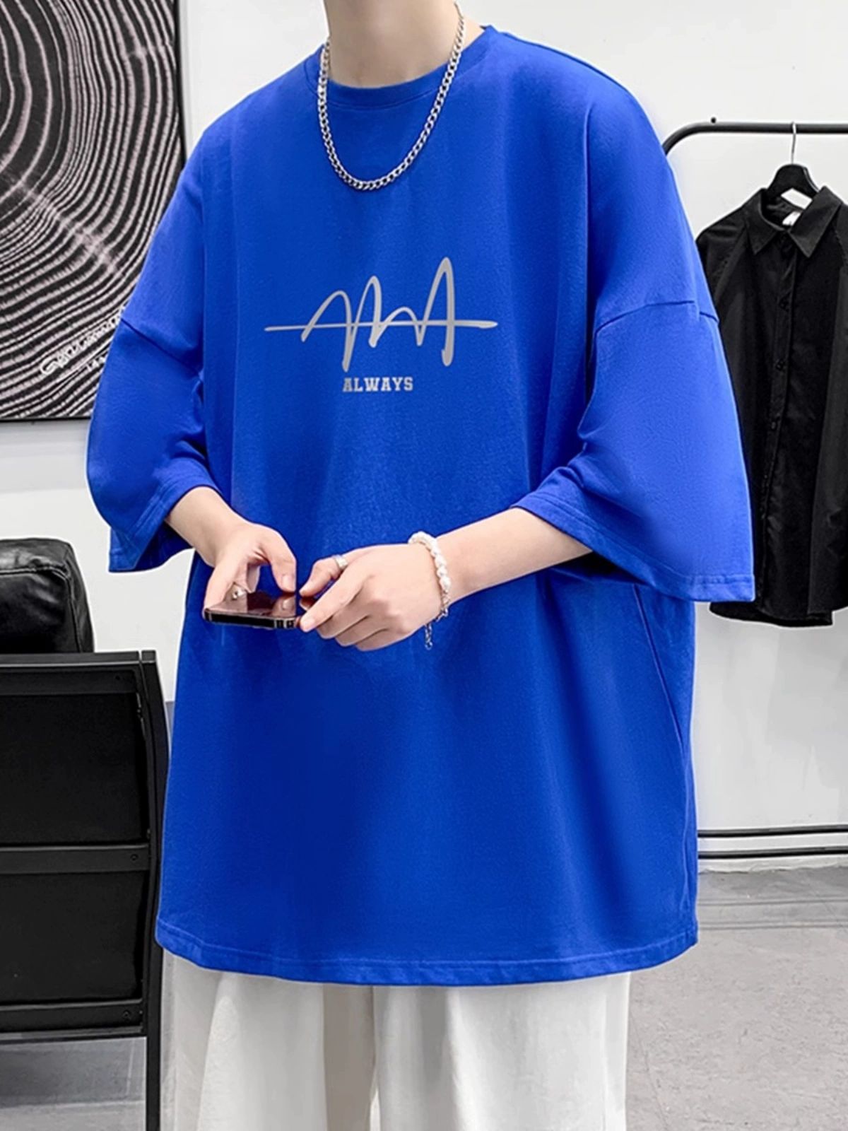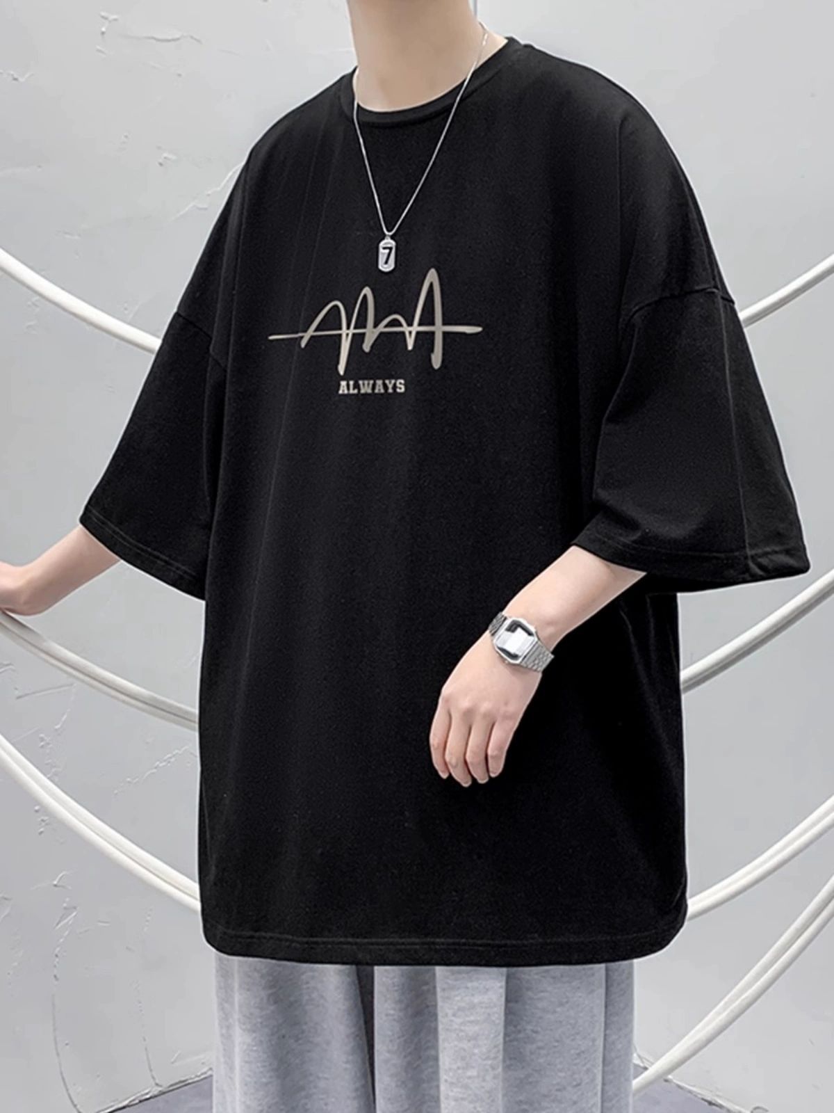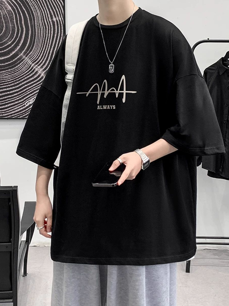 美式重磅纯棉短袖t恤男夏季薄款潮牌痞帅大码宽松印花五分袖上衣