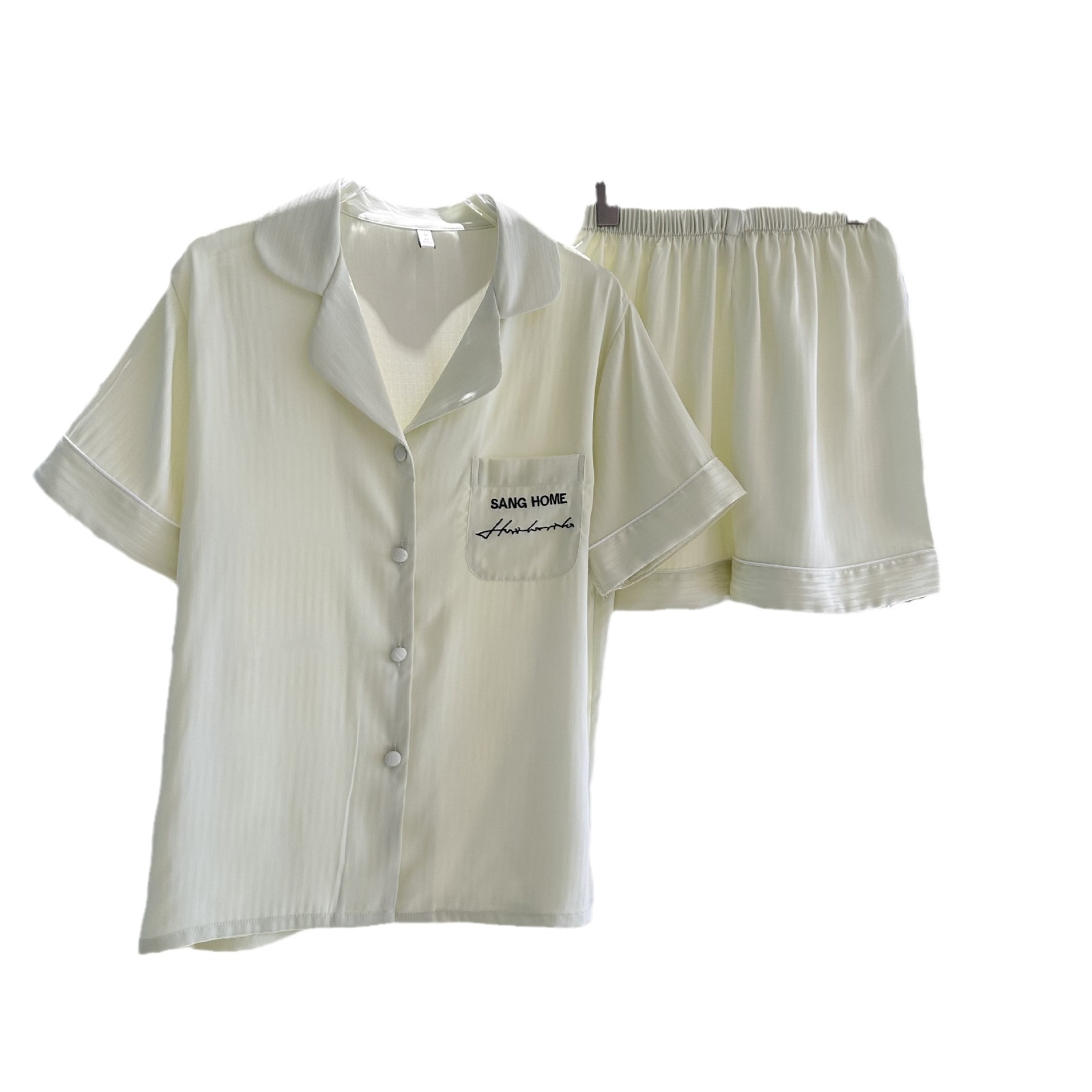 夏季新款短袖短裤睡衣女冰丝甜美少女套装家居服法式仿真丝睡衣