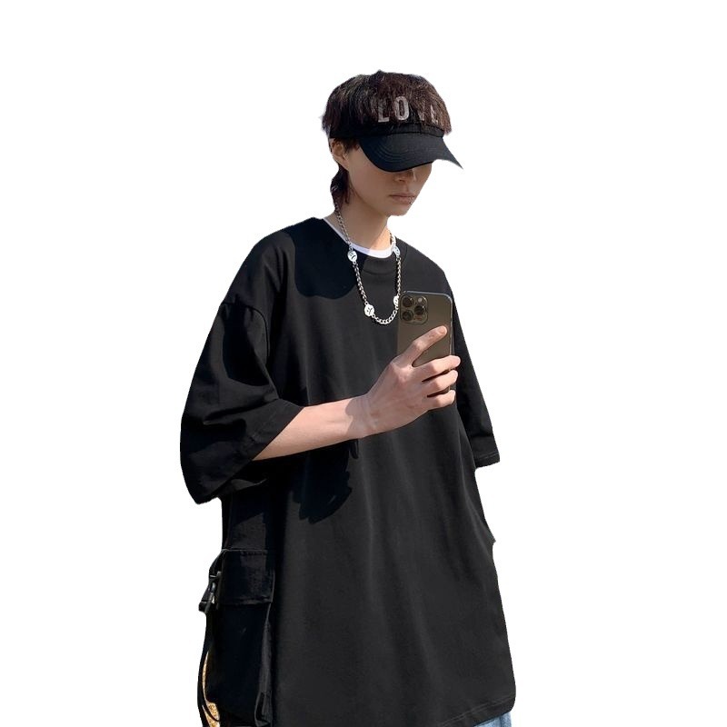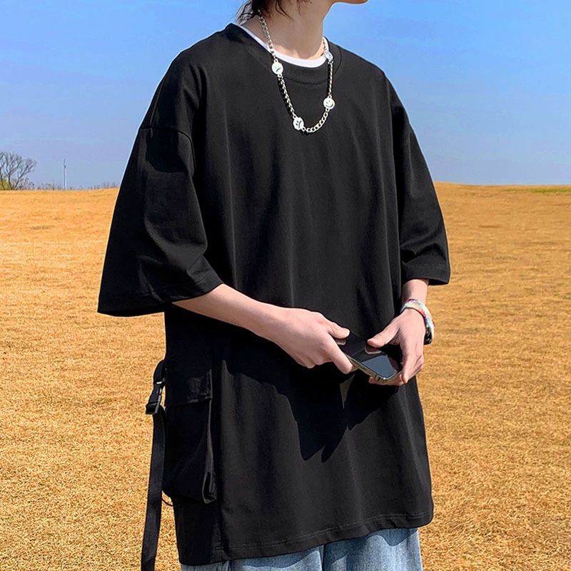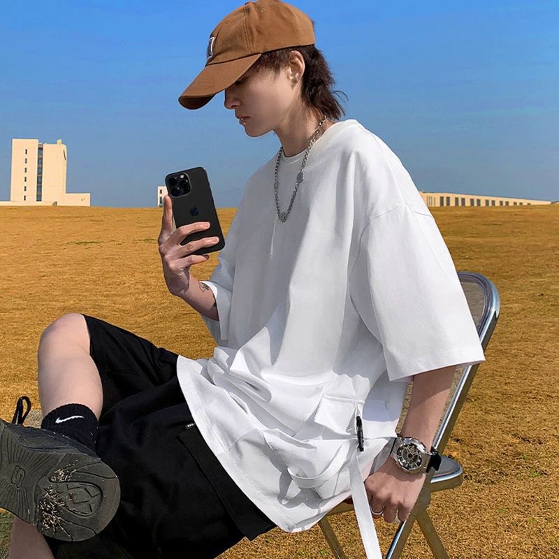 美式复古小领口t恤男夏季潮牌大口袋设计感小众短袖港风大码半袖
