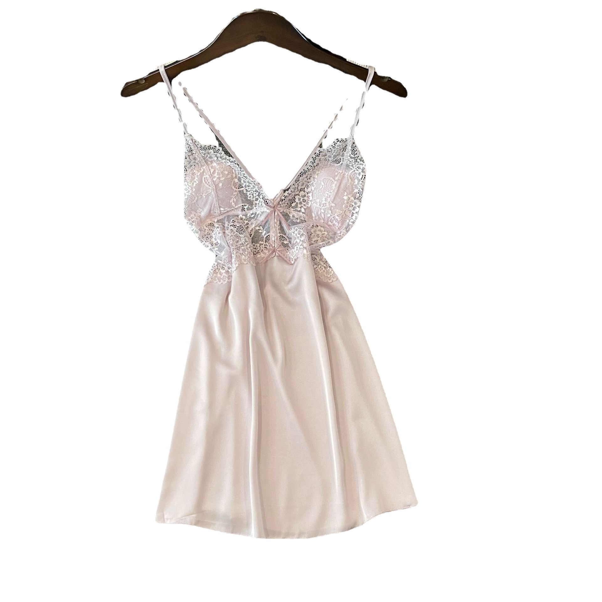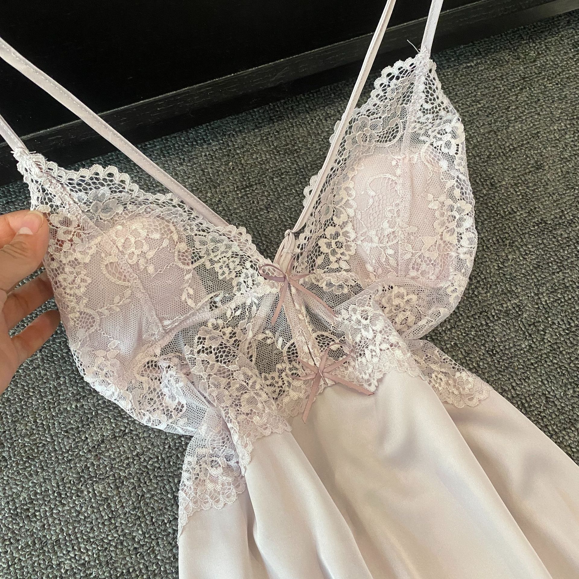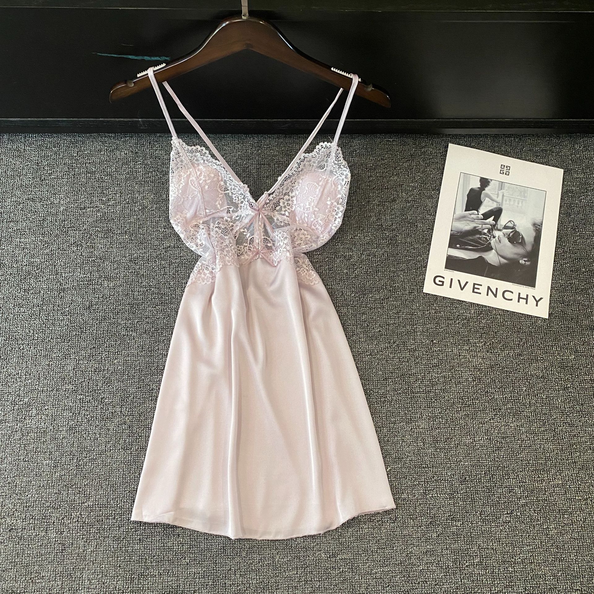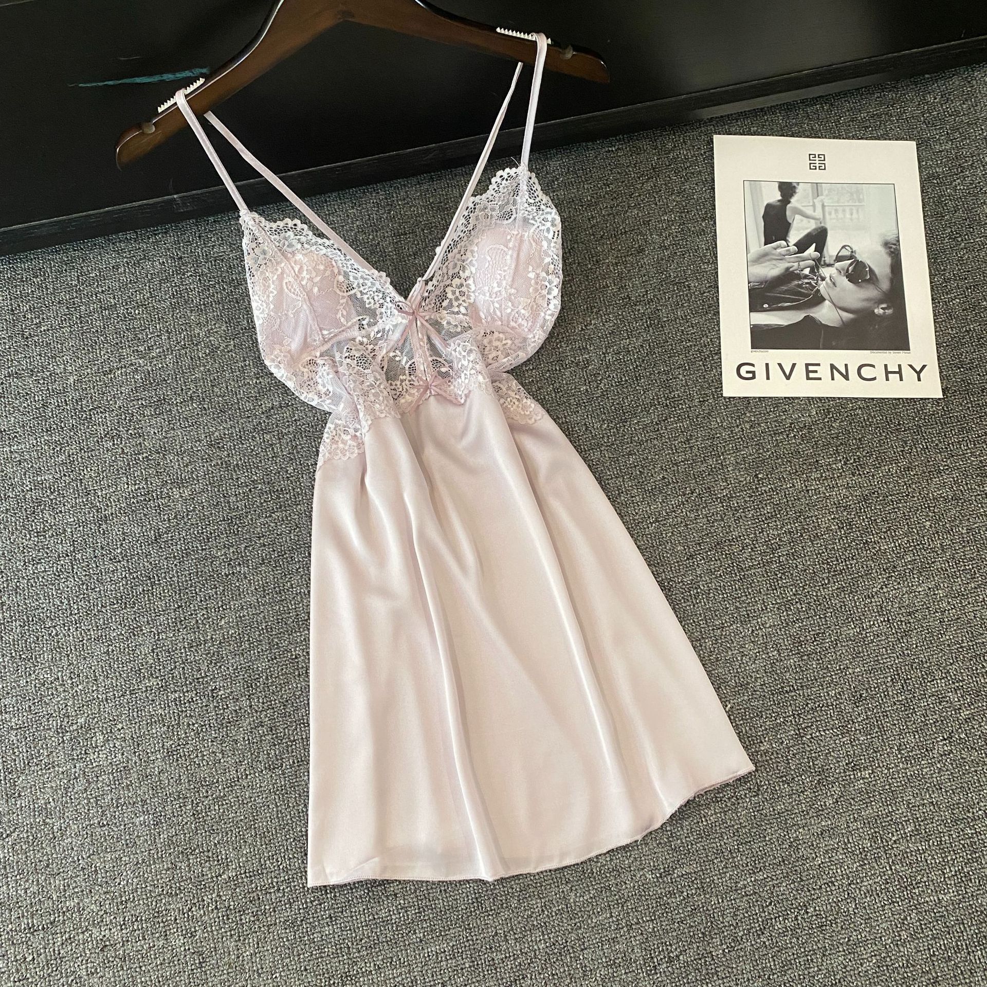 新款性感睡裙女士夏季仿真丝吊带冰丝睡衣ins纯欲睡衣带胸垫