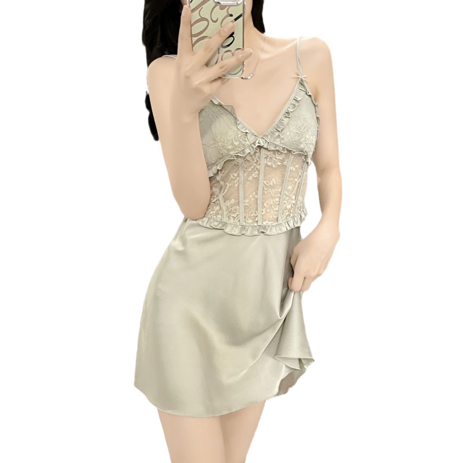 新款性感睡裙女士夏季吊带冰丝绸睡衣ins纯欲睡衣情趣带胸垫