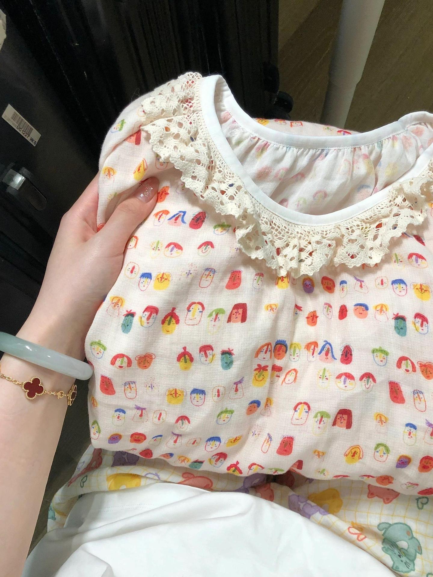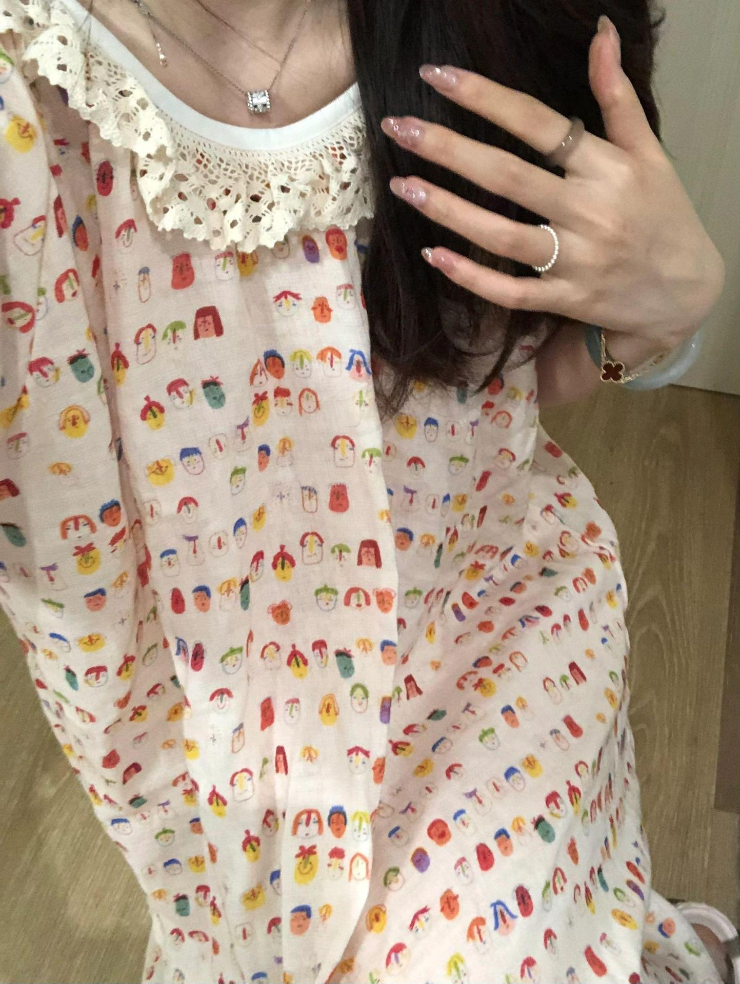 可爱卡通印花长袖棉纱睡衣女款夏季新款睡裙大码甜美连衣裙子