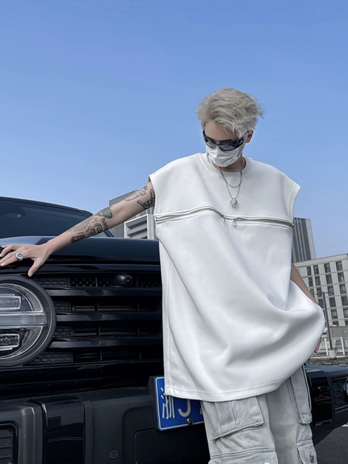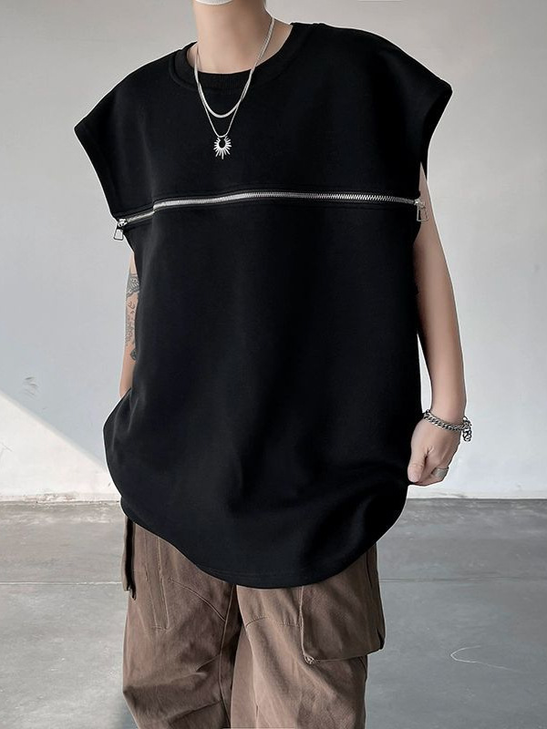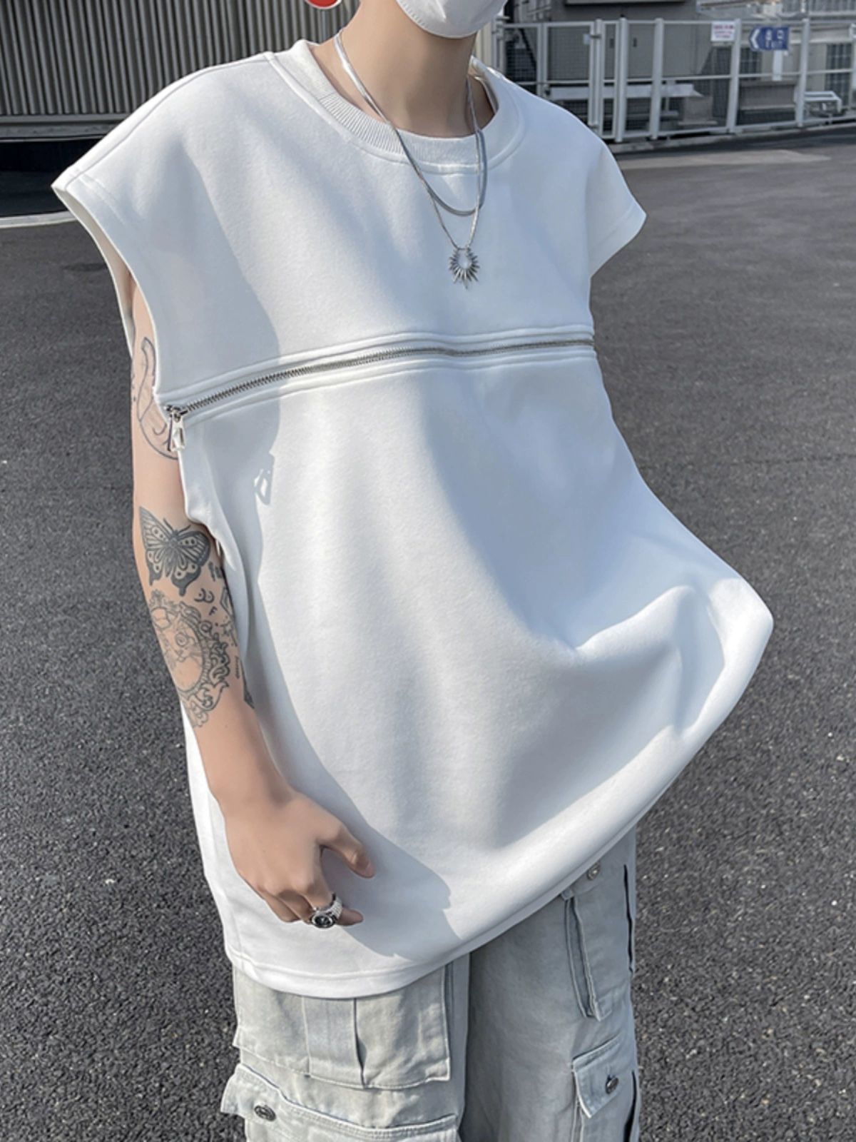背心男生夏季新款300g重磅美式拉链设计宽松痞帅休闲无袖坎肩T恤
