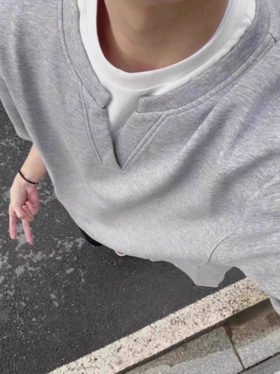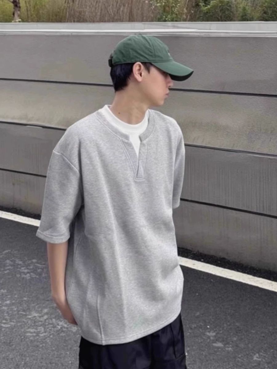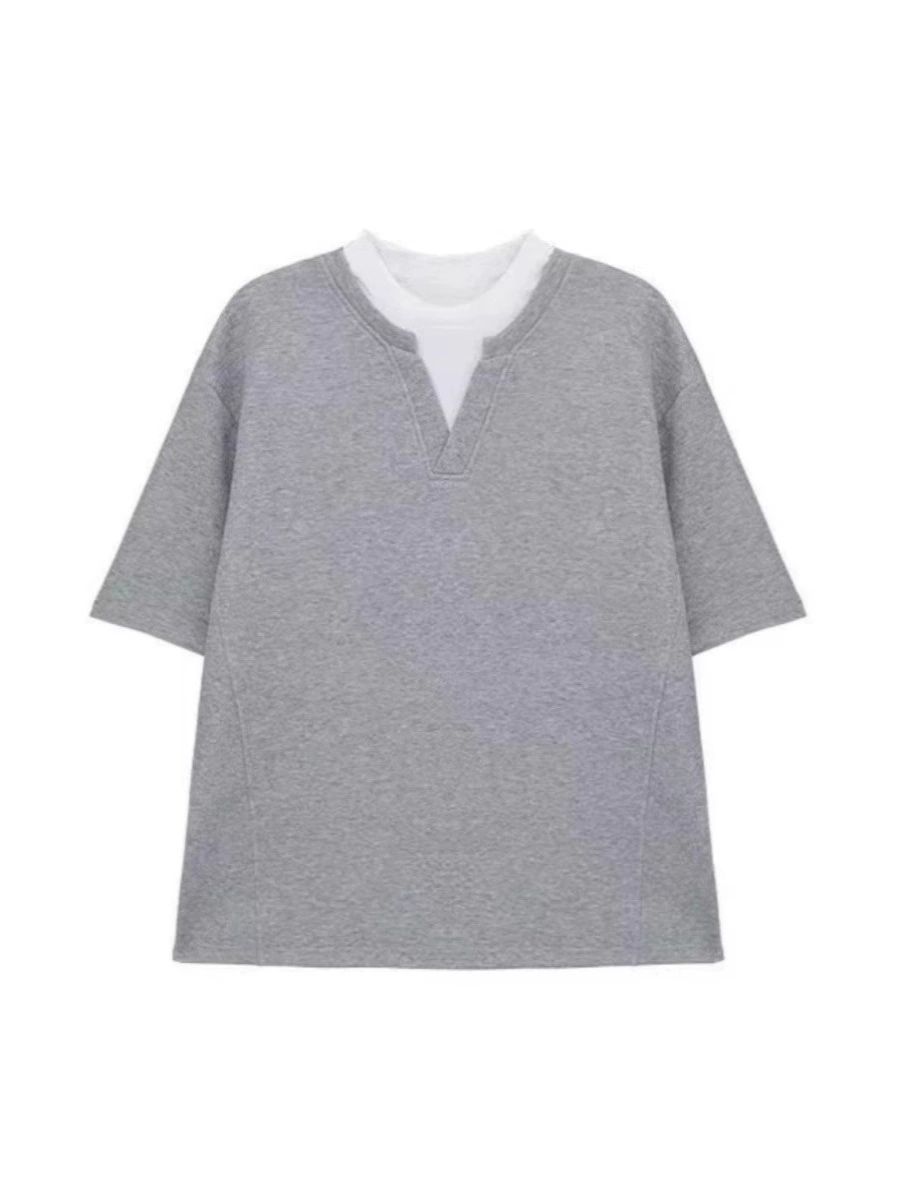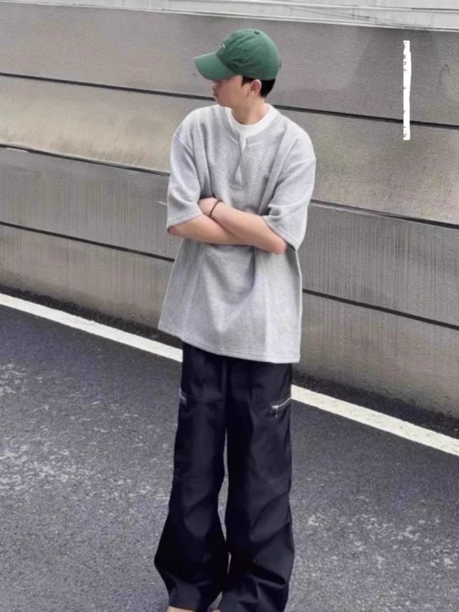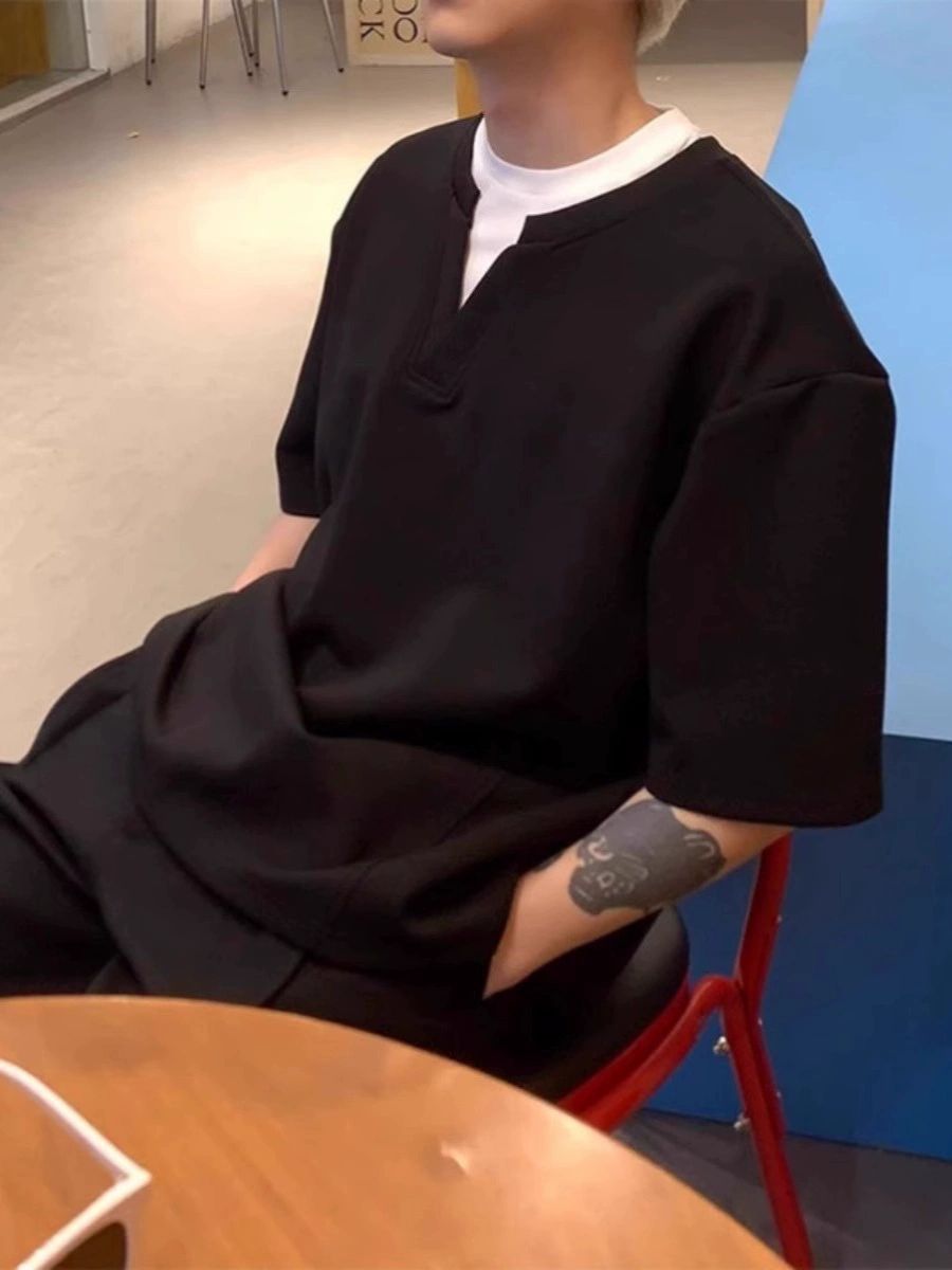 假两件重磅短袖男设计感小众撞色vibe国潮高街t恤宽松韩版半截袖