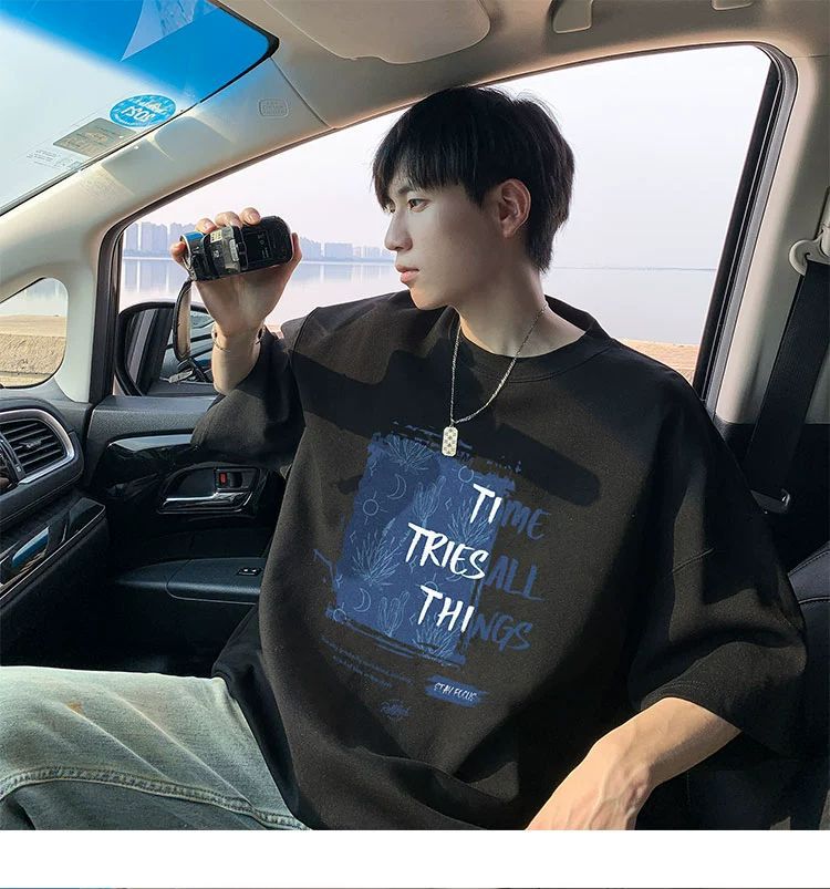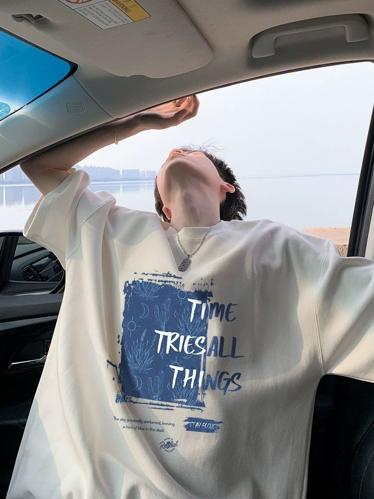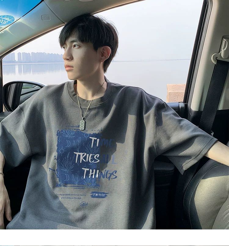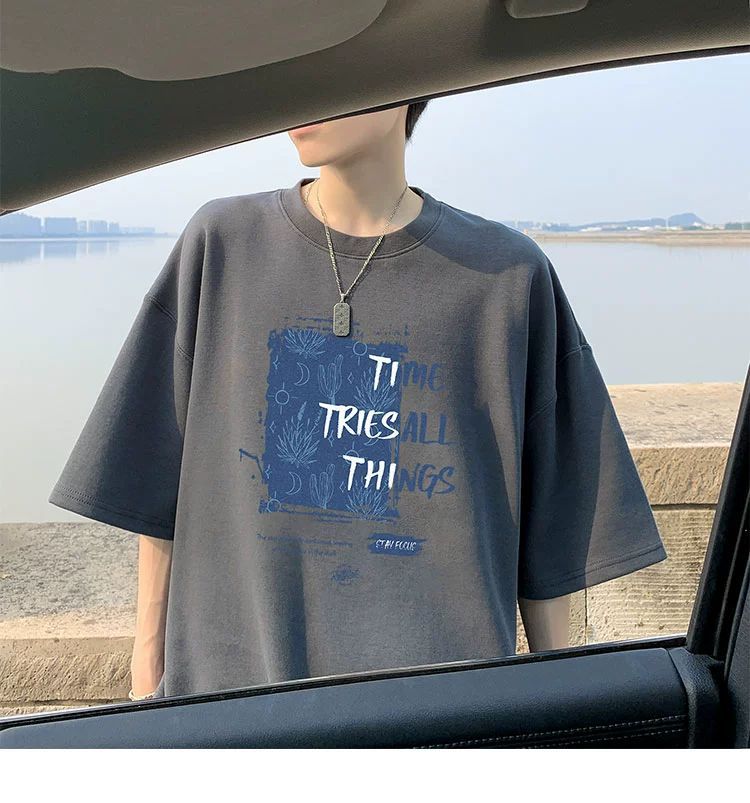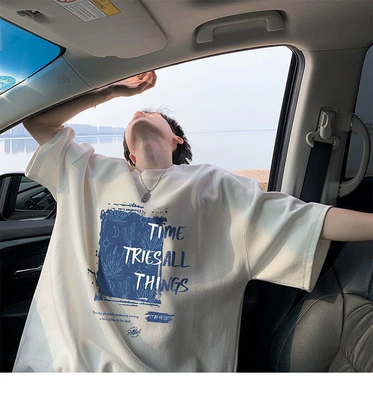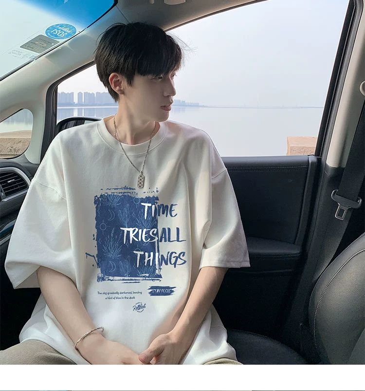 白色重磅200g短袖t恤男潮牌潮流美式复古纯棉宽松高街半袖体恤衫