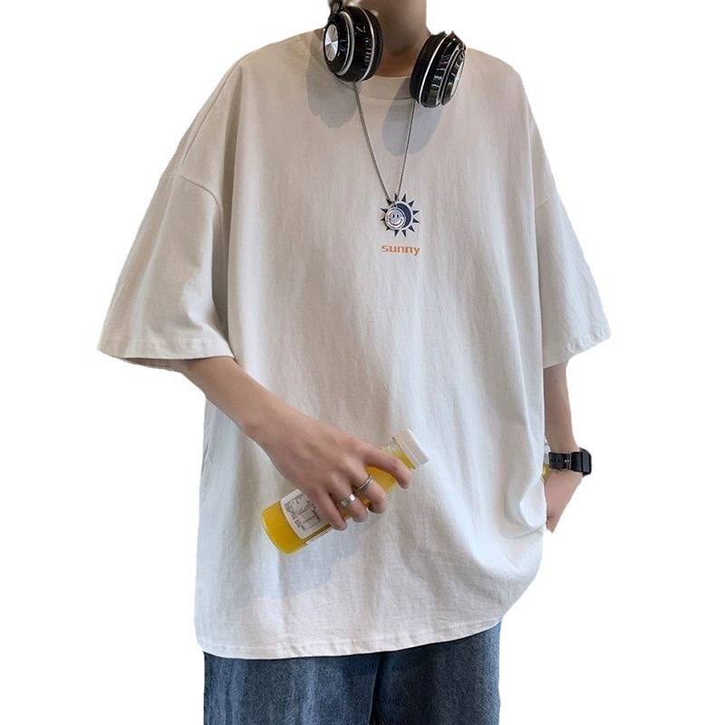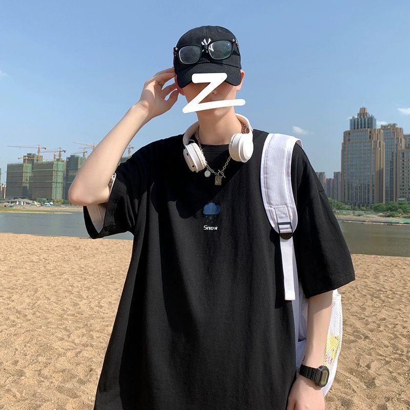 夏季潮牌短袖男宽松百搭港风印花t恤ins潮流帅气嘻哈中袖大码衣服