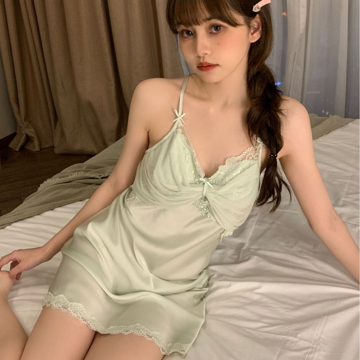 面料:丝绸,带胸垫,可拆卸