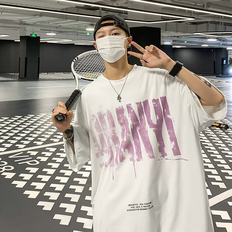 字母印花短袖t恤男夏季ins街头美式复古嘻哈宽松情侣半袖上衣服潮