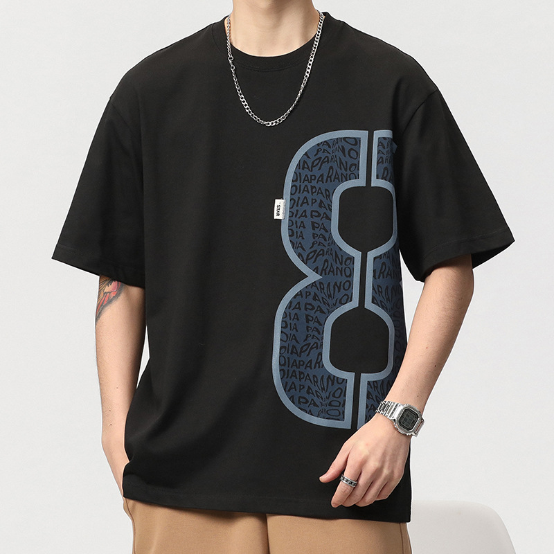 美式夏季新款短袖数字印花看潮流宽松加大码休闲圆领套头T恤