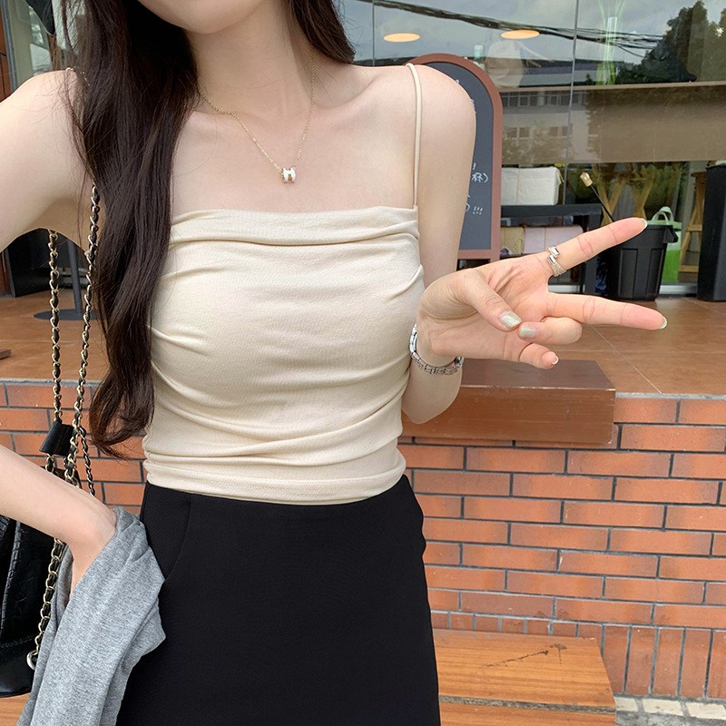 港风海边带胸垫压褶独特绝美红色小吊带女夏新款内搭外穿辣妹上衣