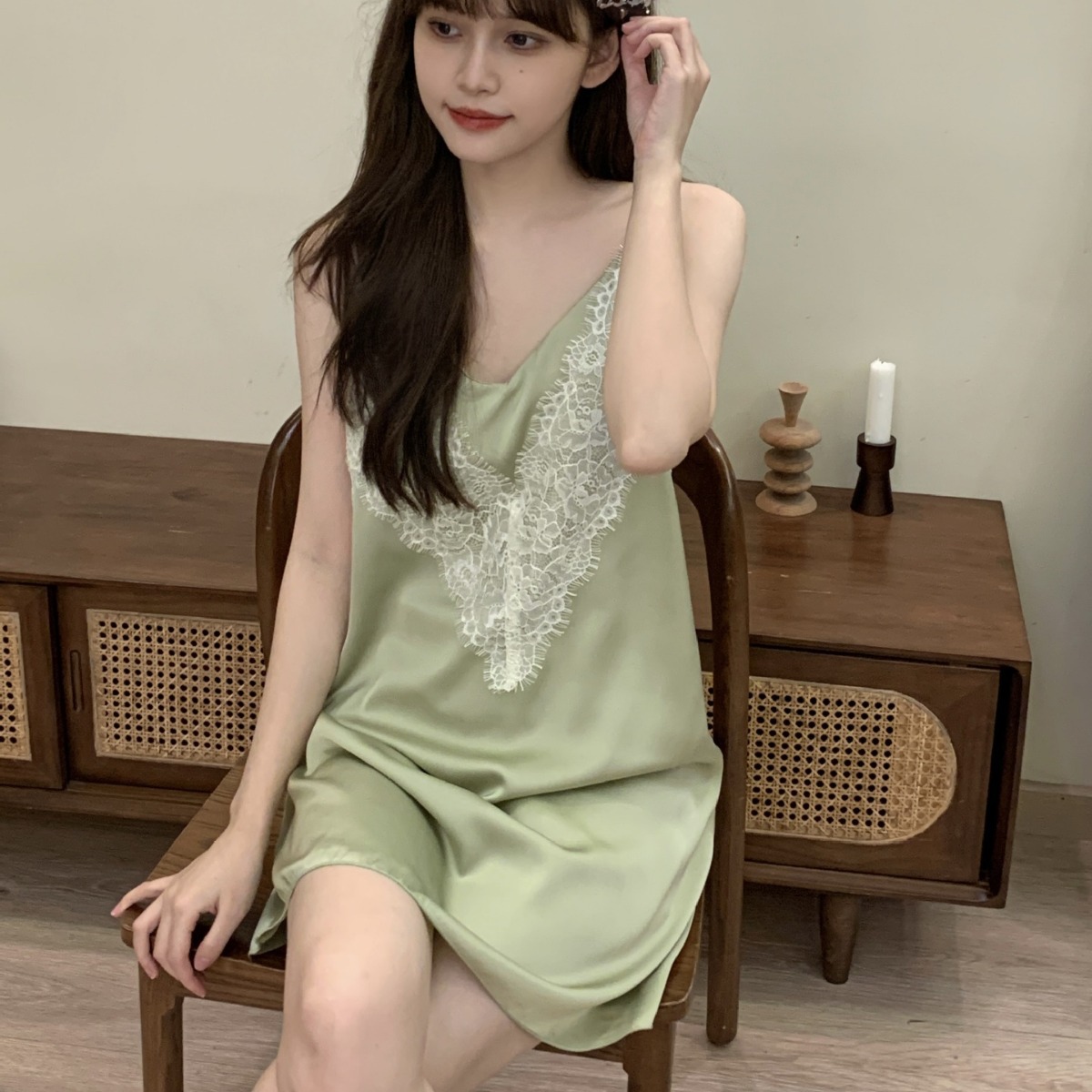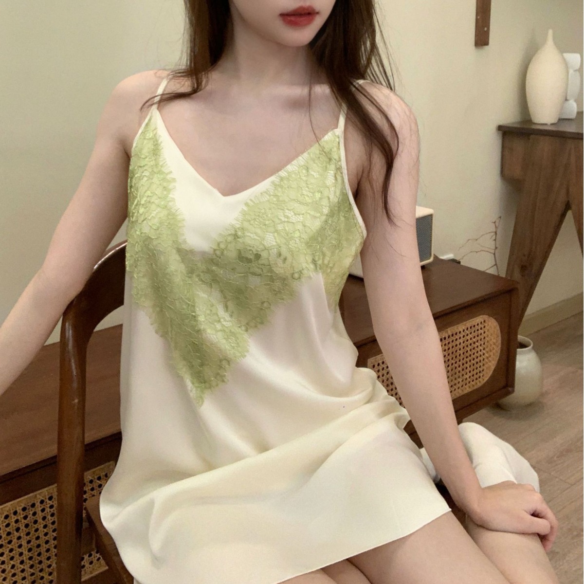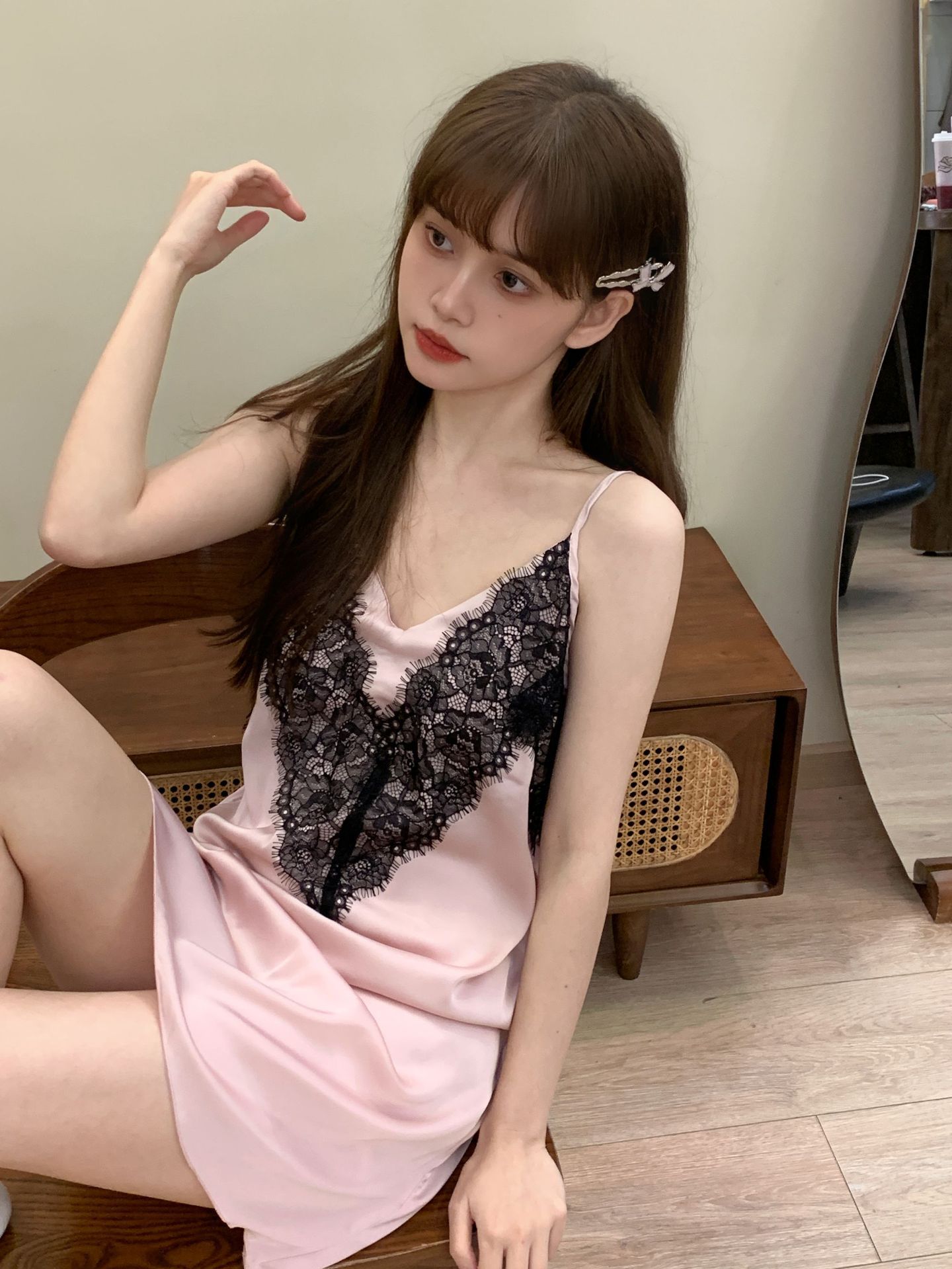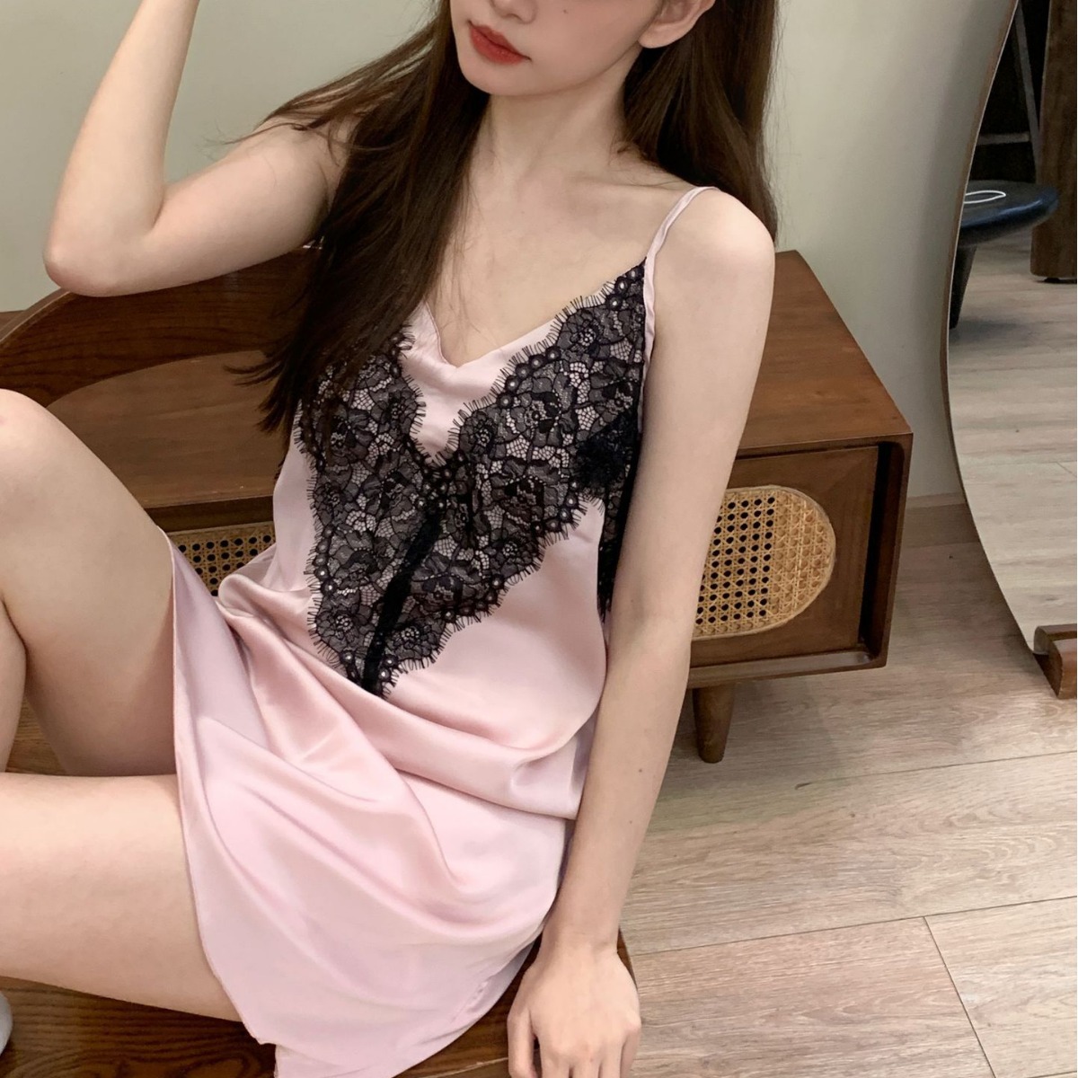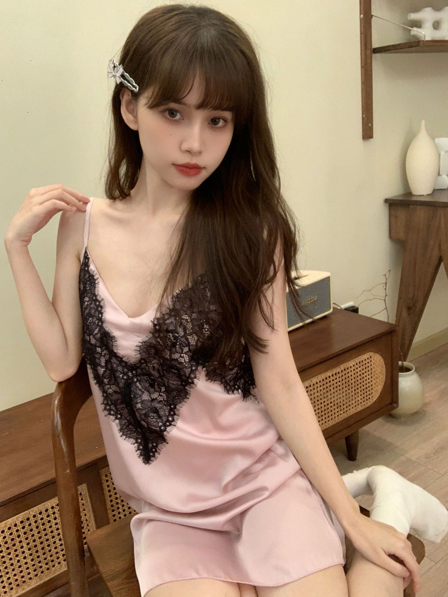 性感吊带睡衣夏季女带胸垫小胸蕾丝睡裙冰丝薄款凉感睡衣纯欲日系
