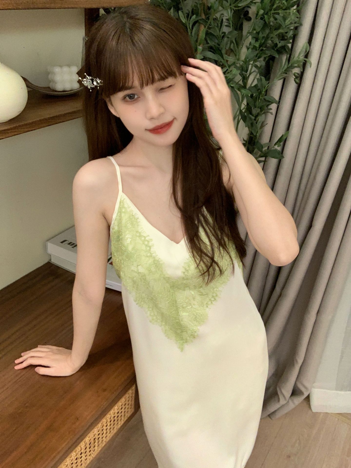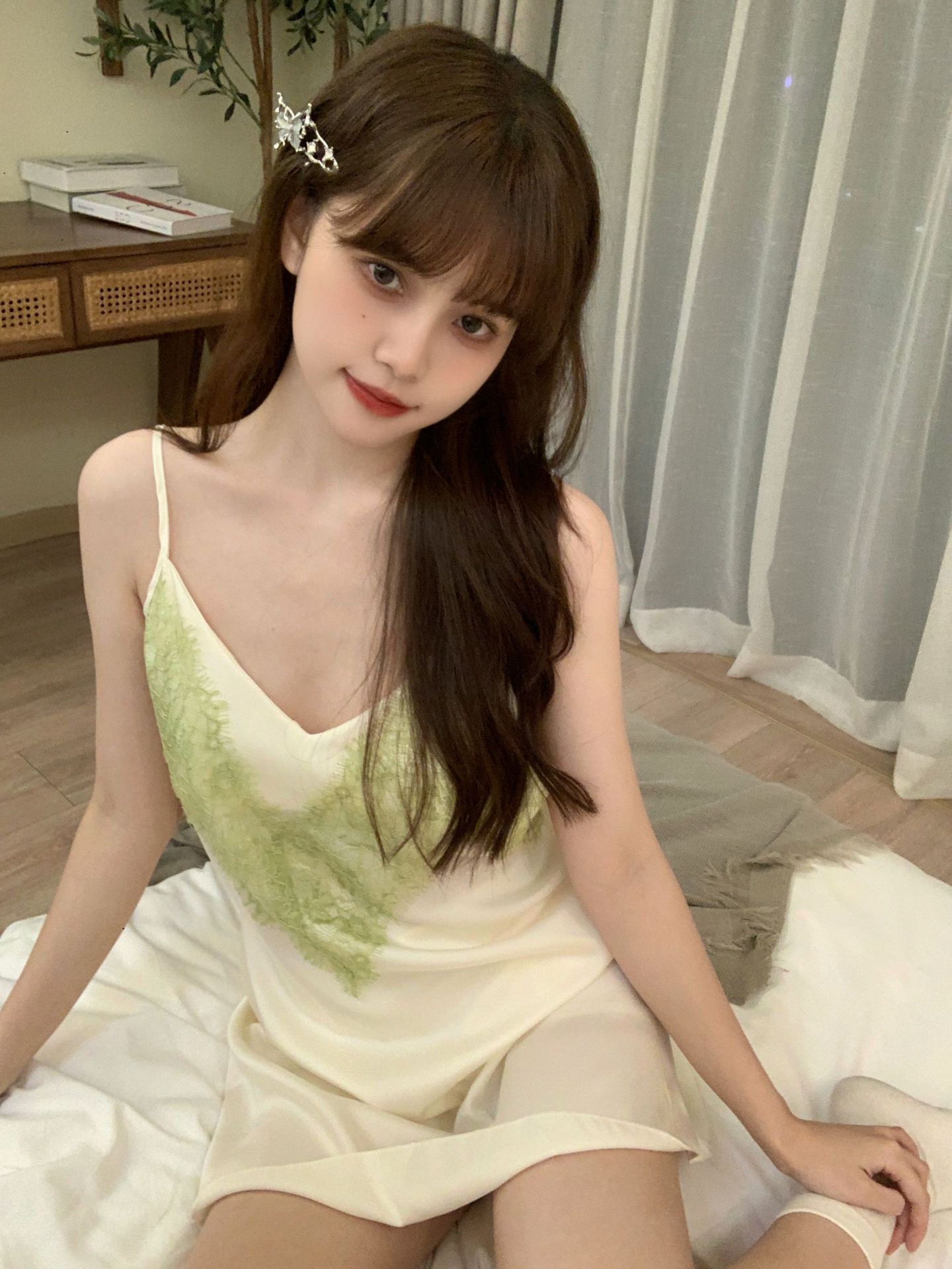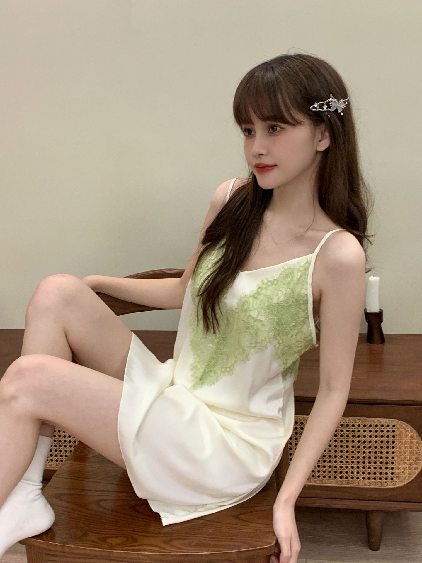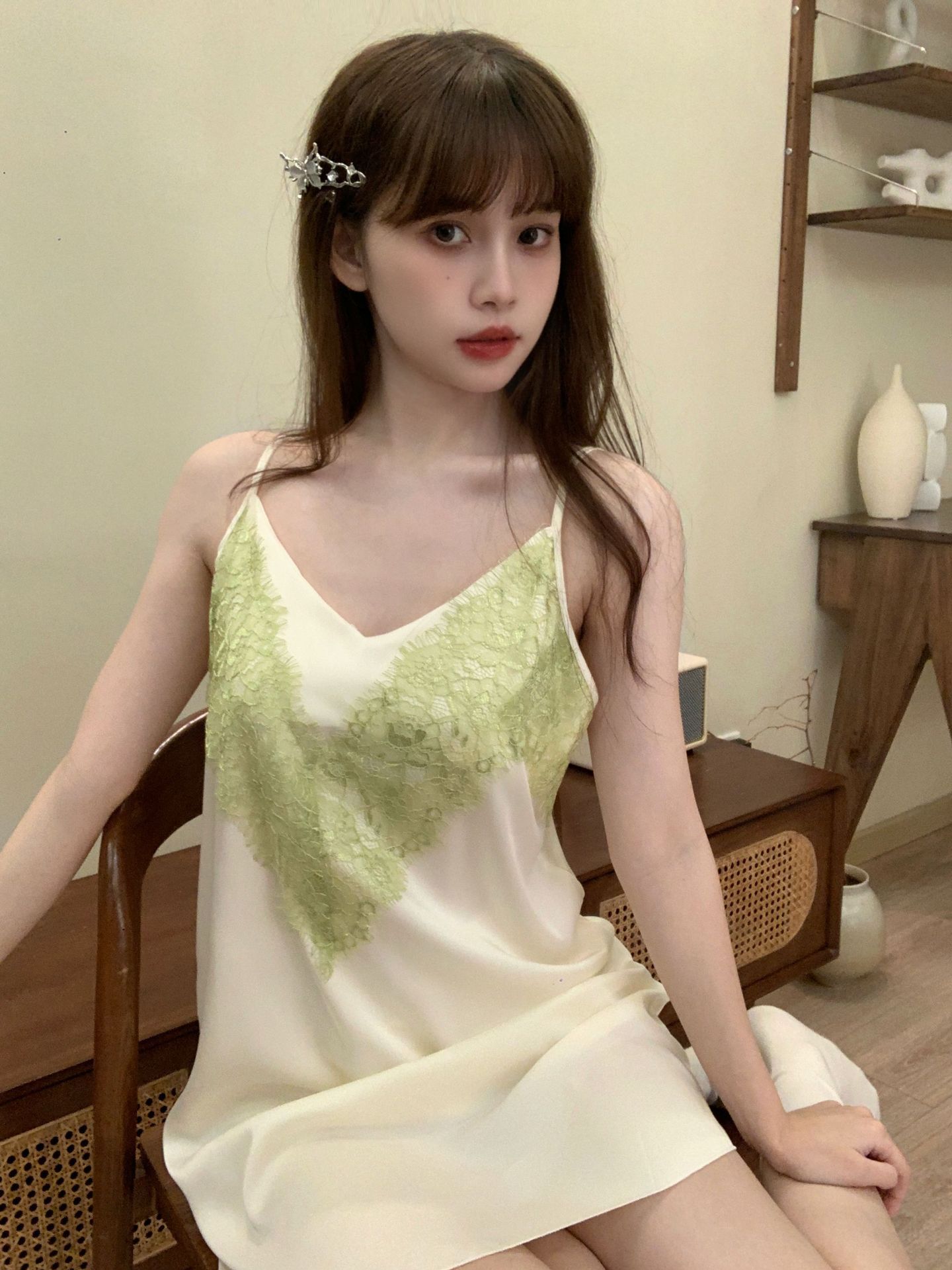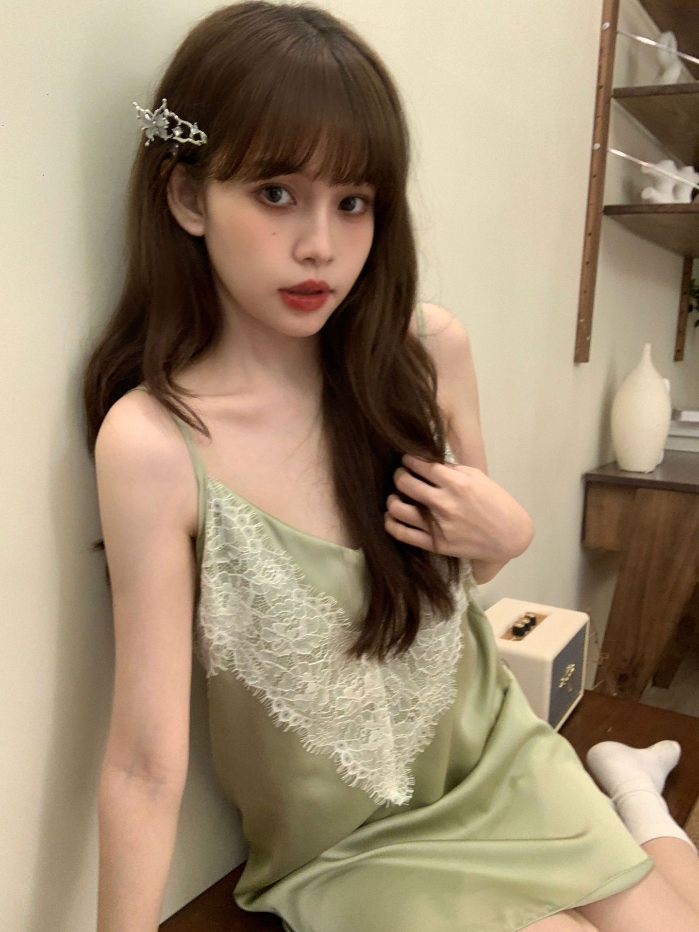 性感吊带睡衣夏季女带胸垫小胸蕾丝睡裙冰丝薄款凉感睡衣纯欲日系