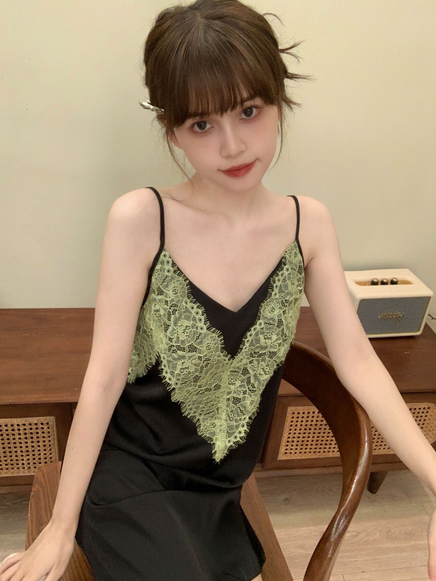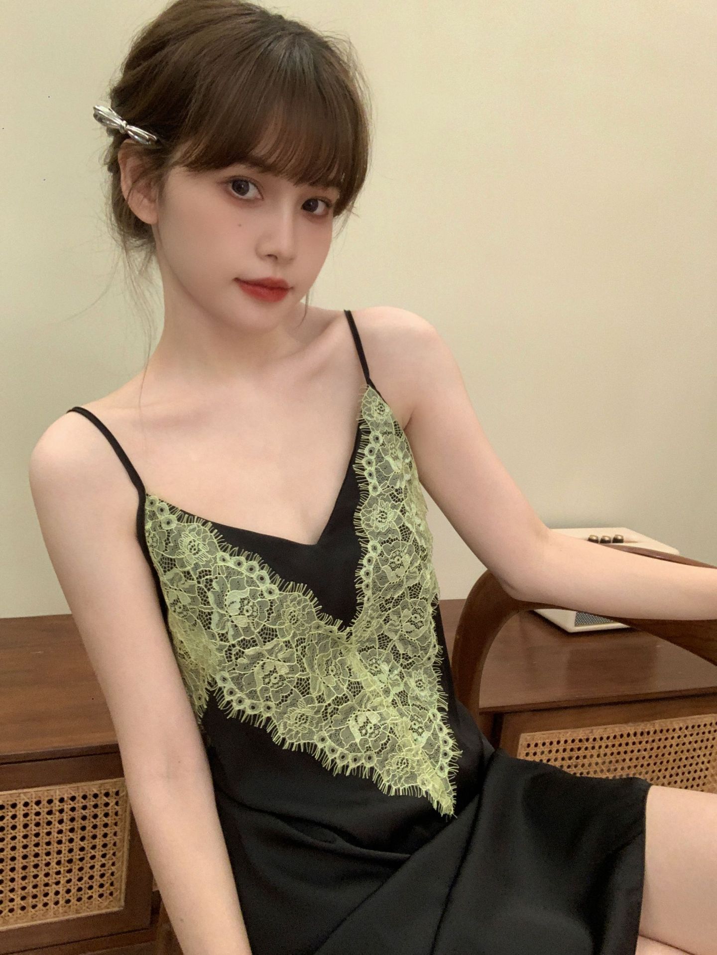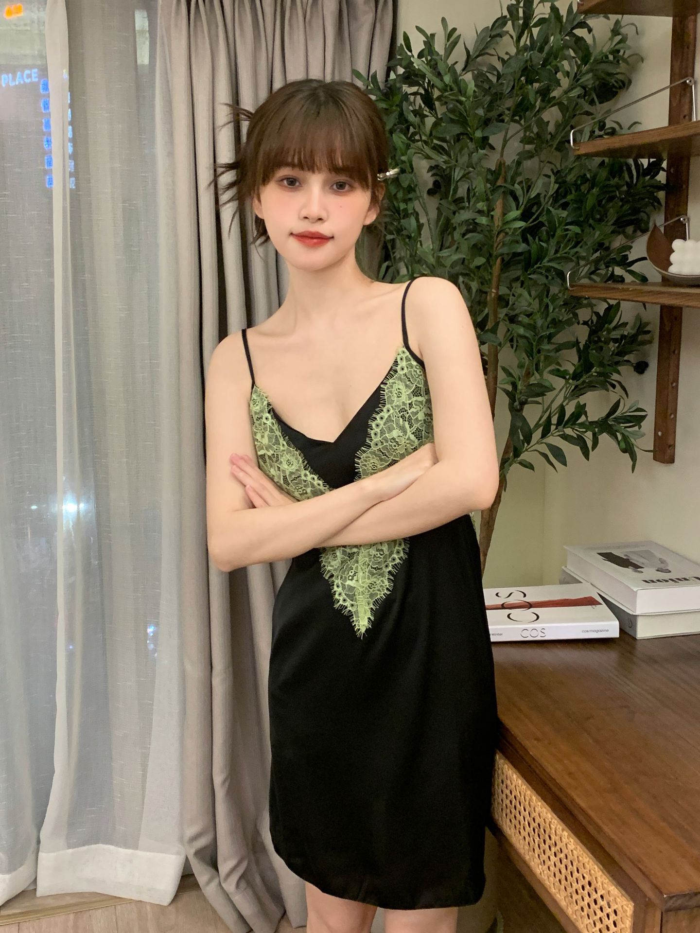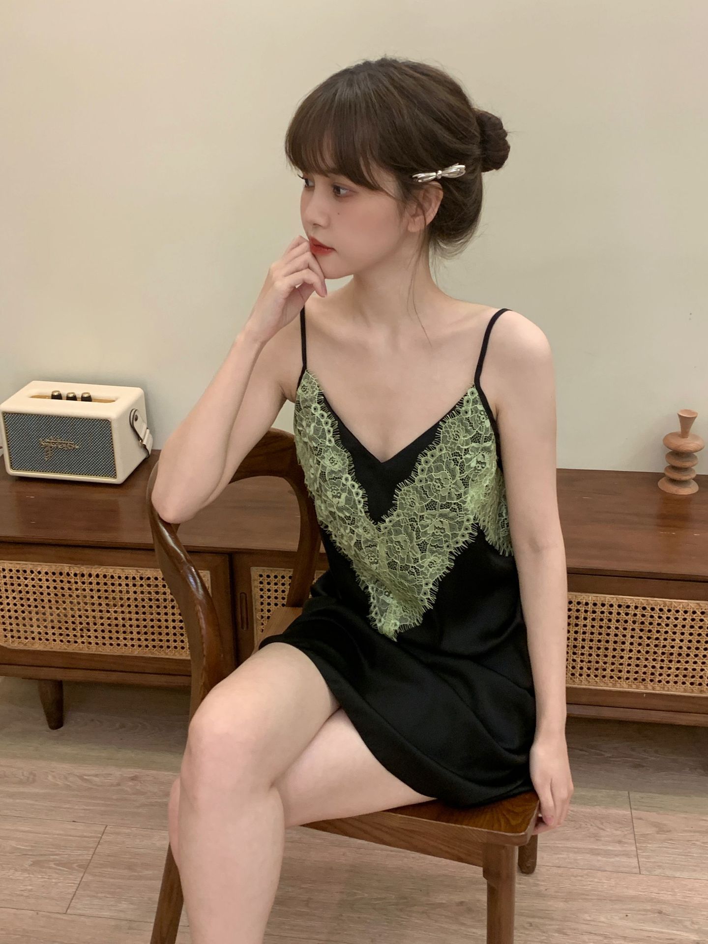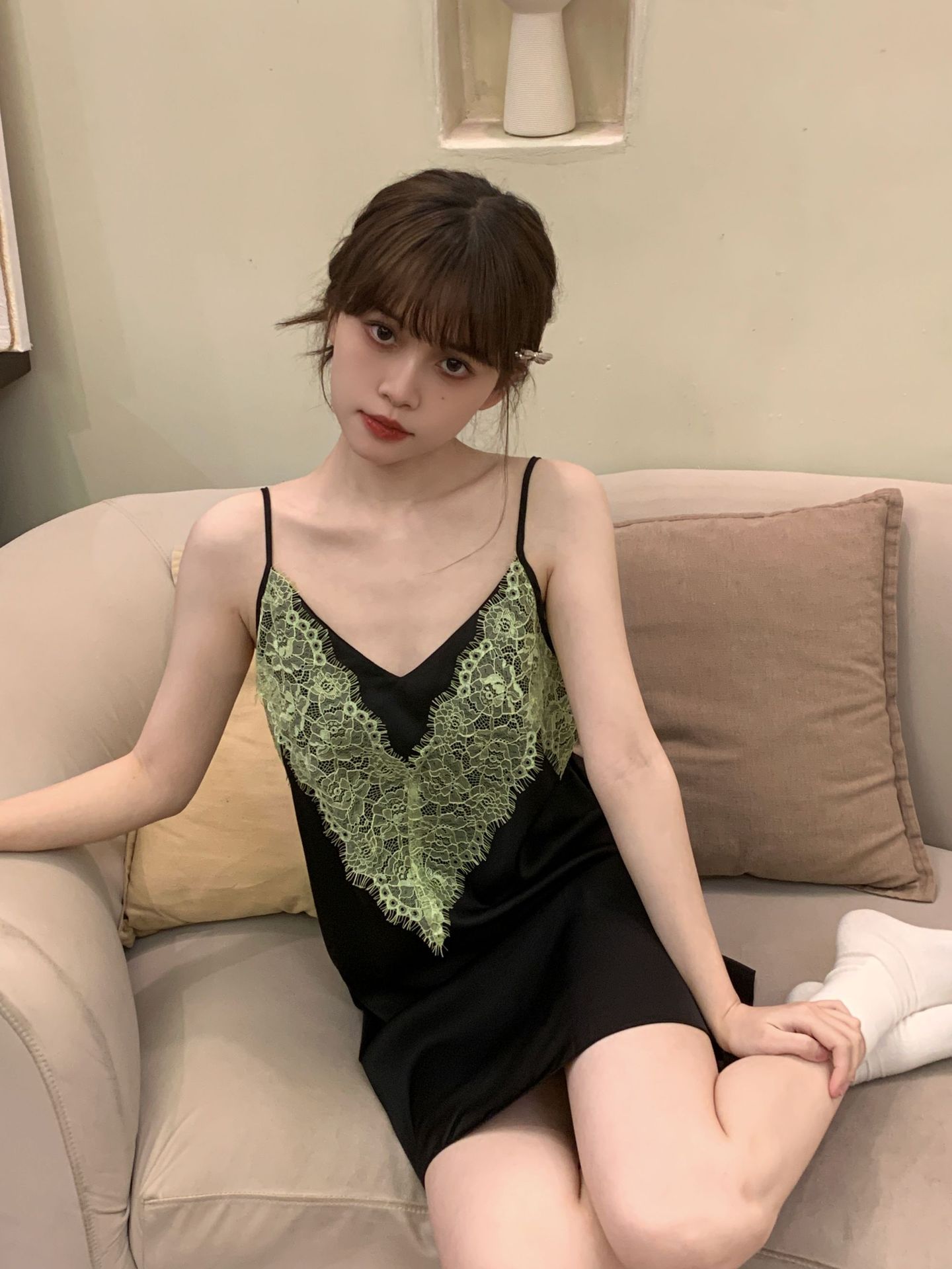 性感吊带睡衣夏季女带胸垫小胸蕾丝睡裙冰丝薄款凉感睡衣纯欲日系