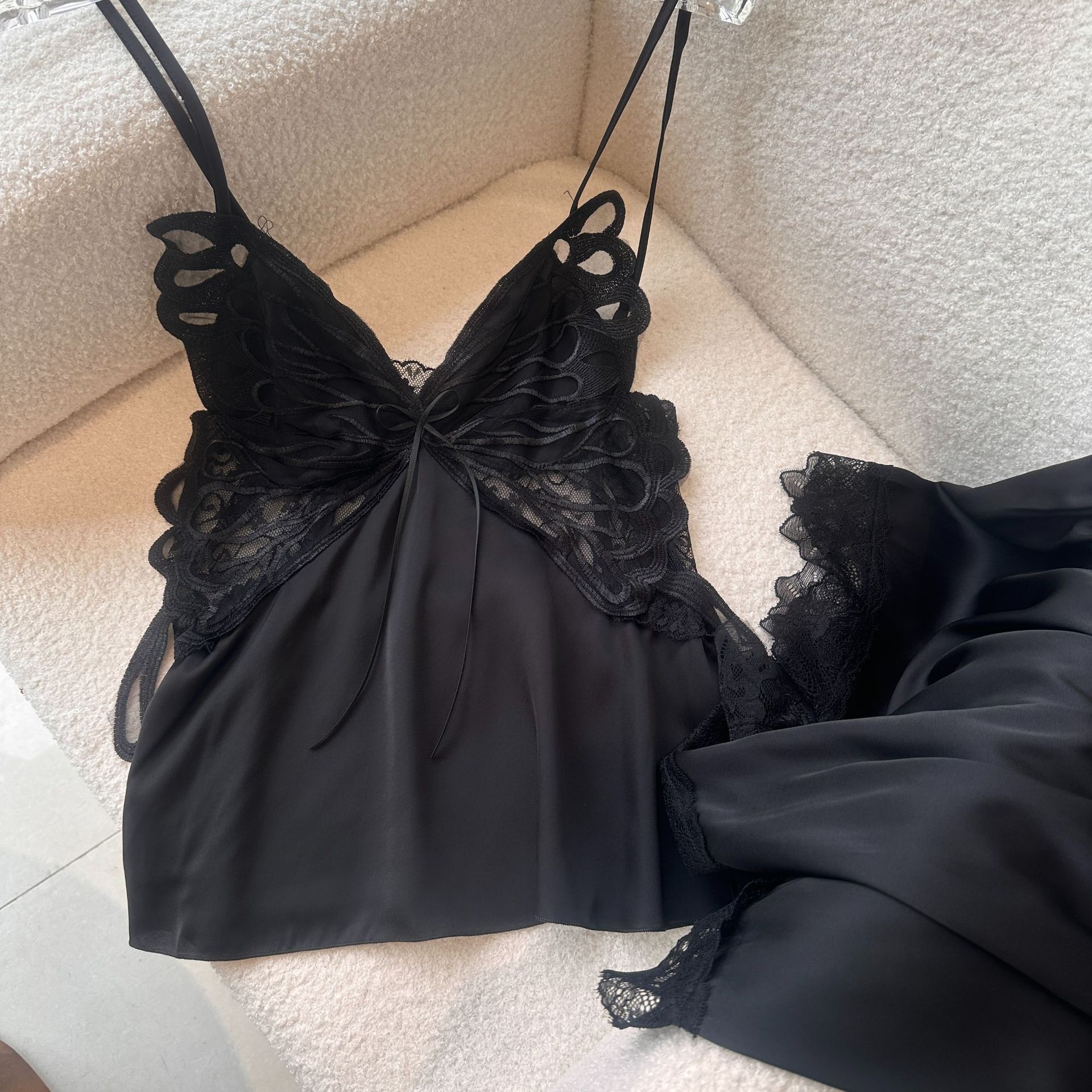 性感睡衣女夏季冰丝绸纯欲蝴蝶爆款吊带短裤带胸垫家居服薄款凉感