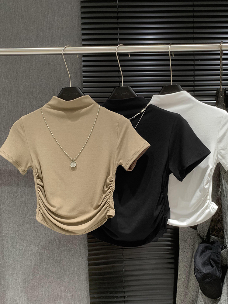 半高领短袖T恤女士高级感夏季港风修身显瘦洋气短款收腰打底上衣