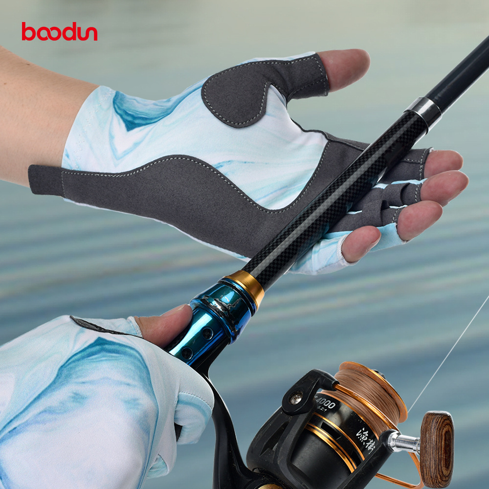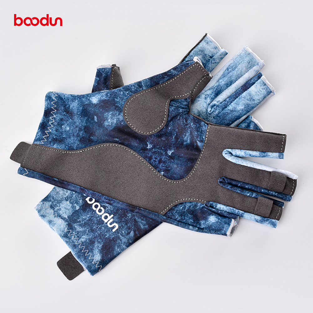 BOODUN/博顿夏季新款钓鱼手套 露五指莱卡转印路亚手套