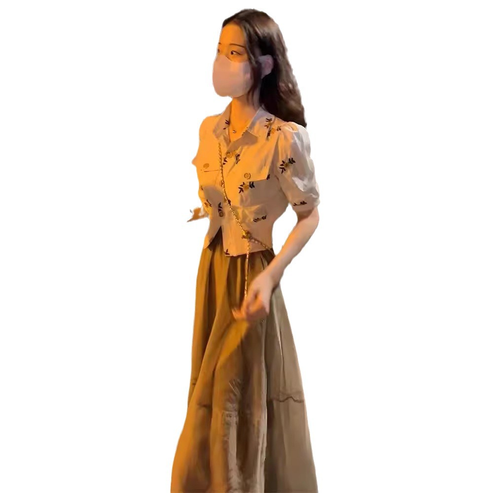 时尚套装女夏季新款气质小香风显瘦碎花上衣半身裙休闲两件套
