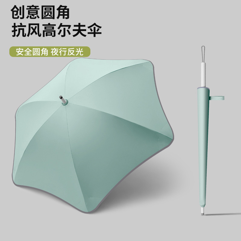 新款创意圆角高尔夫伞直杆反光雨伞黑胶防晒抗风伞礼品