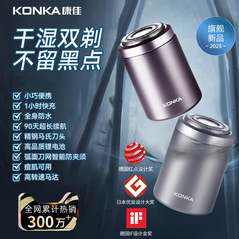 康佳跨境剃须刀家用迷你刮胡刀电动便携旅行充电款全身水洗小钢炮