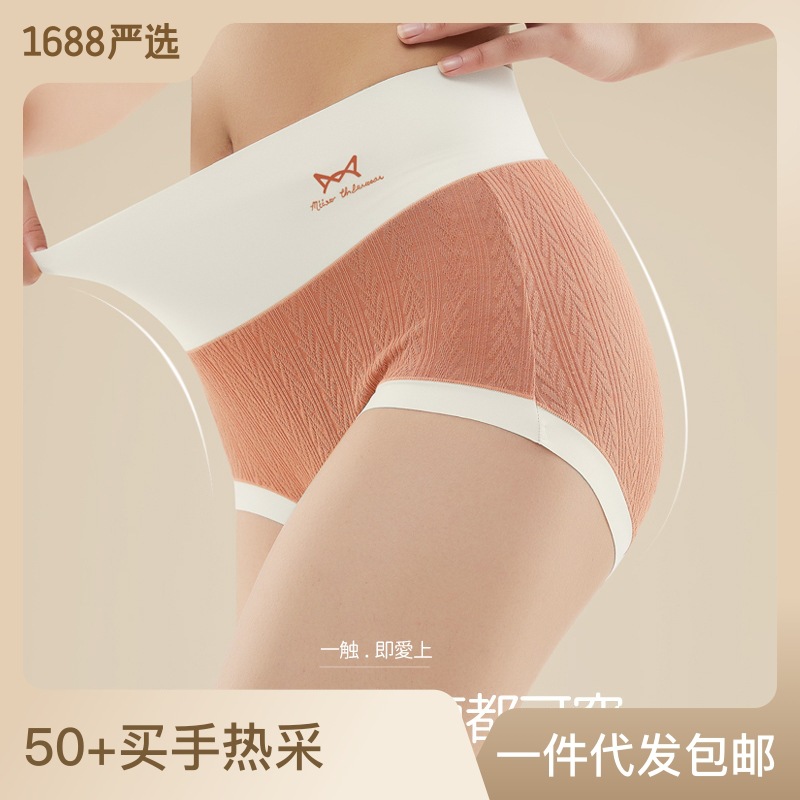 猫人内裤女士纯棉抗菌高腰收腹无痕大码短裤头女式全棉内裤