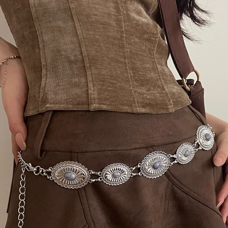 民族风金属压花腰链女款韩版新款高级感腰带装饰配连衣裙收腰百搭