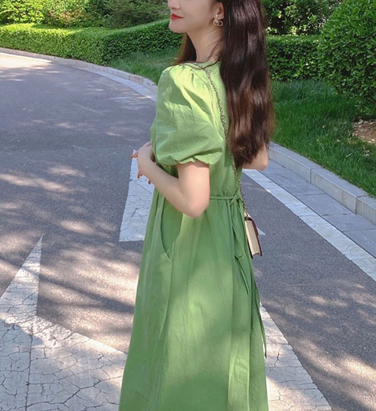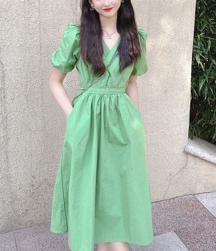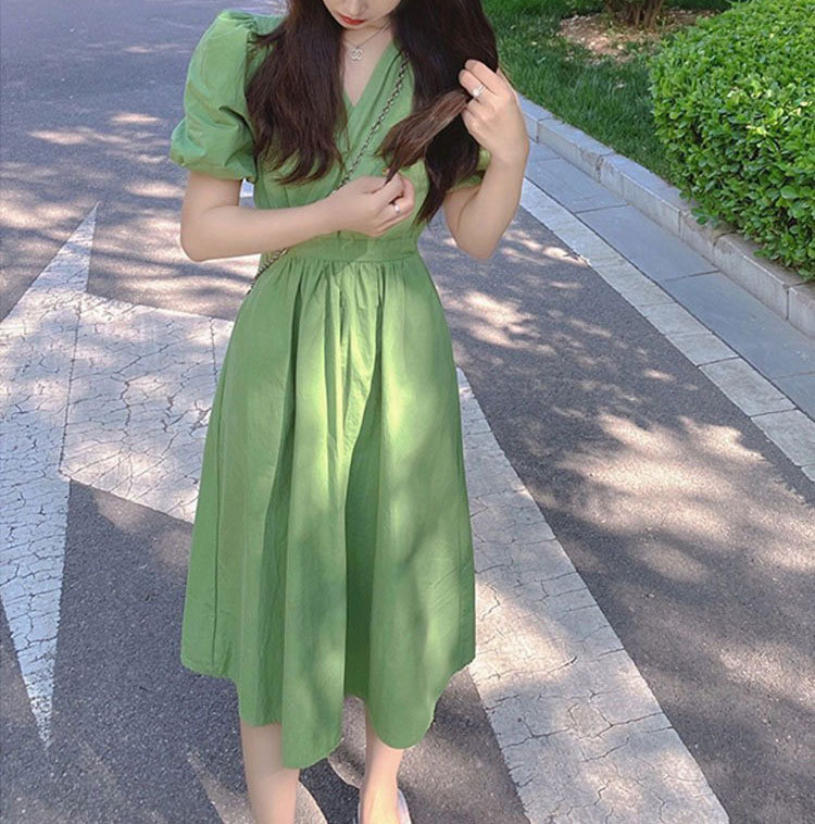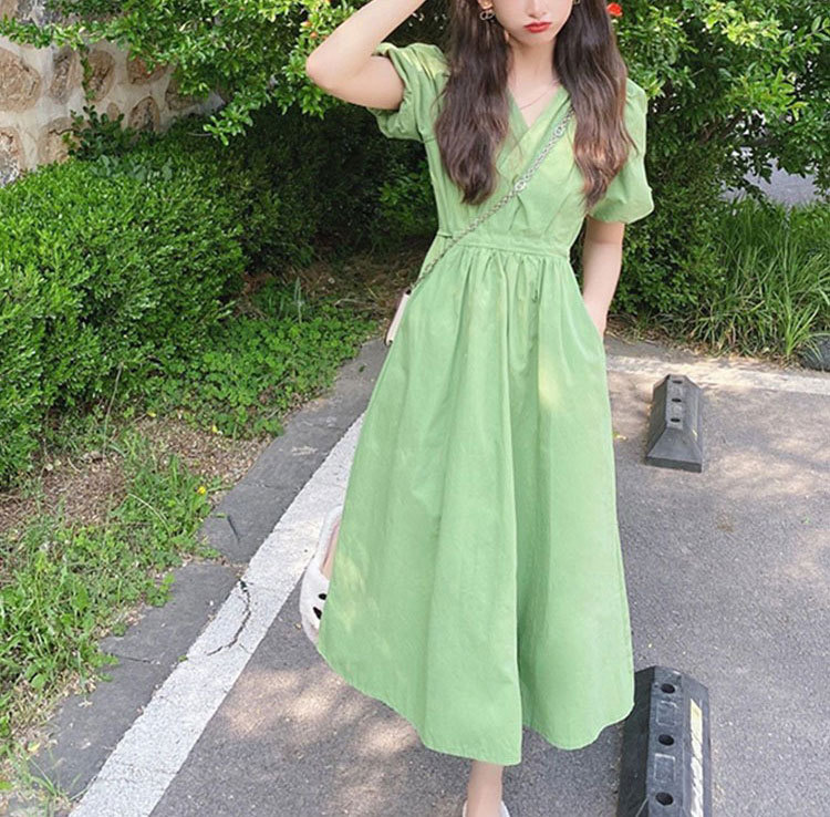 赫本风法式减龄绿色连衣裙夏季新款小个子惊艳绝美超仙女长裙