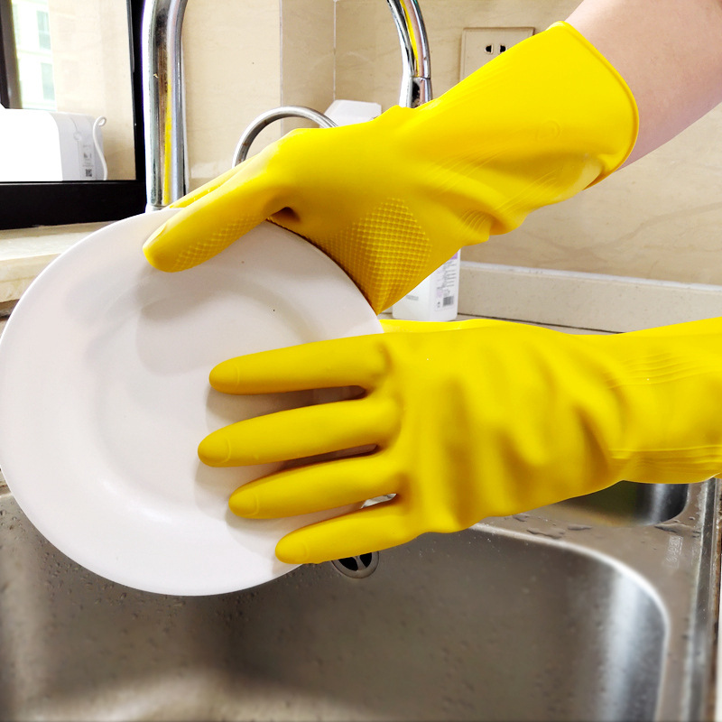 黄色牛筋橡胶手套厨房洗碗家用洗菜洗车清洁家务防水耐酸碱洗衣
