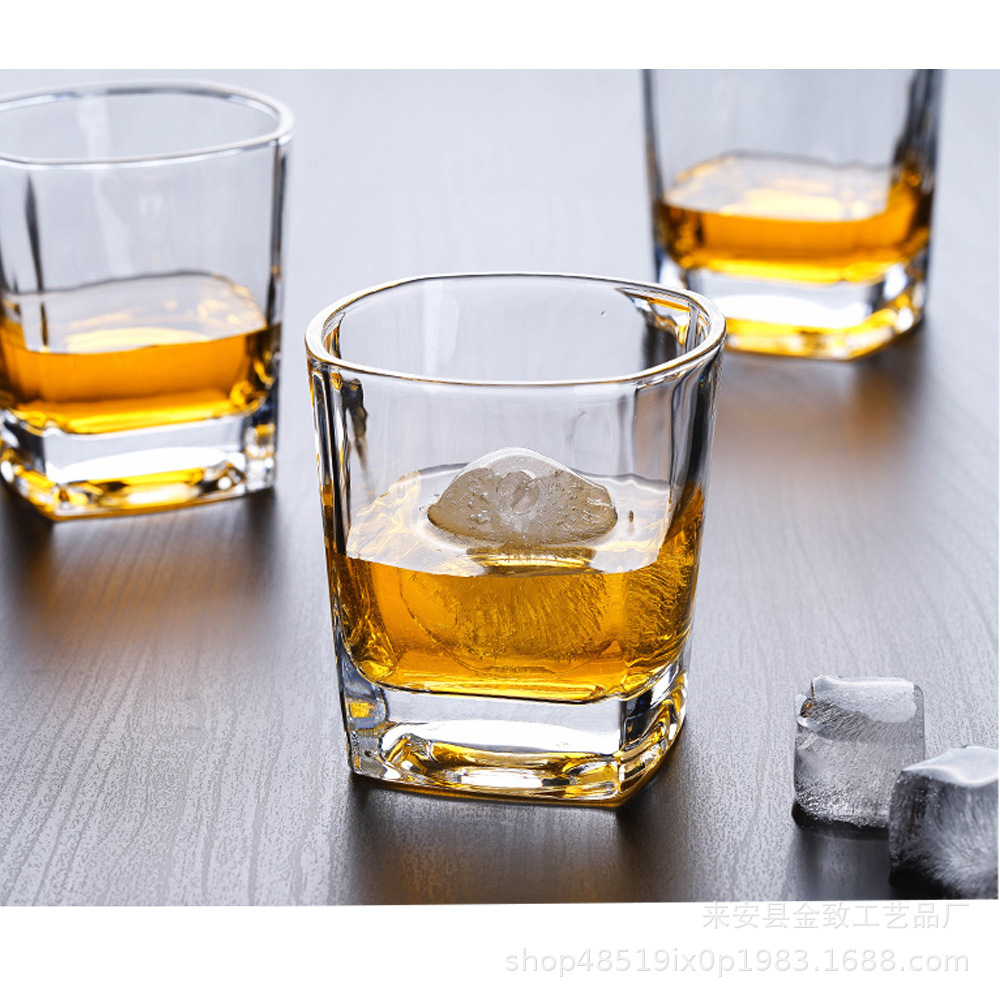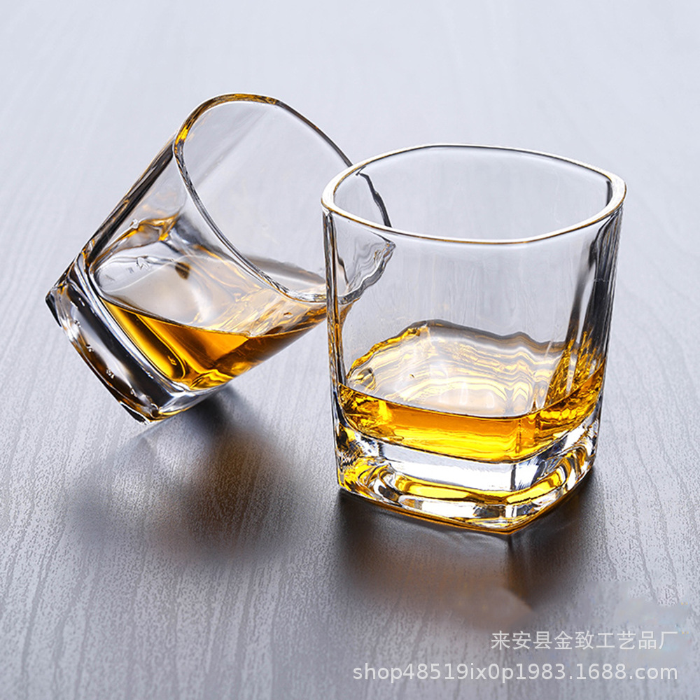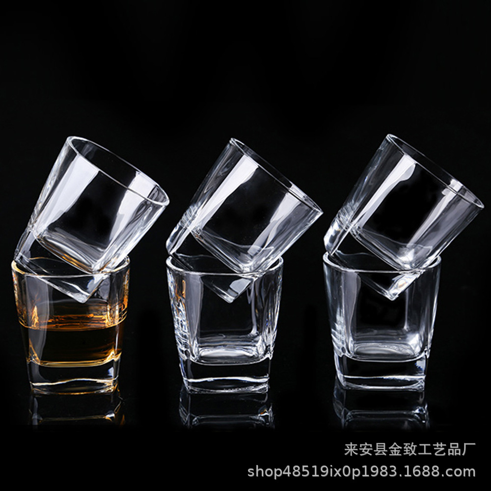 透明加厚底晶白玻璃玻威士忌酒杯四方型啤酒杯饮料玻璃杯