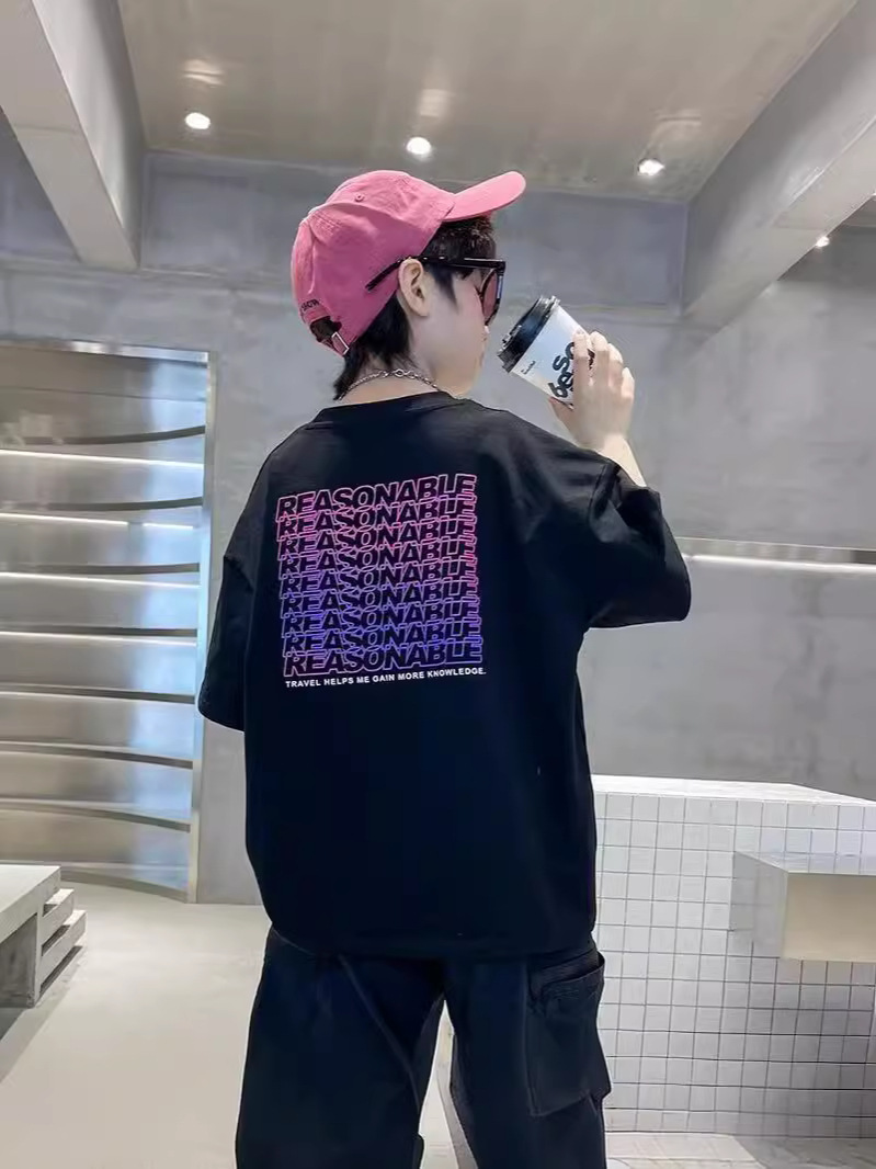 夏装男童短袖T恤夏季新款中大童宽松纯棉印花字母洋气半袖潮T