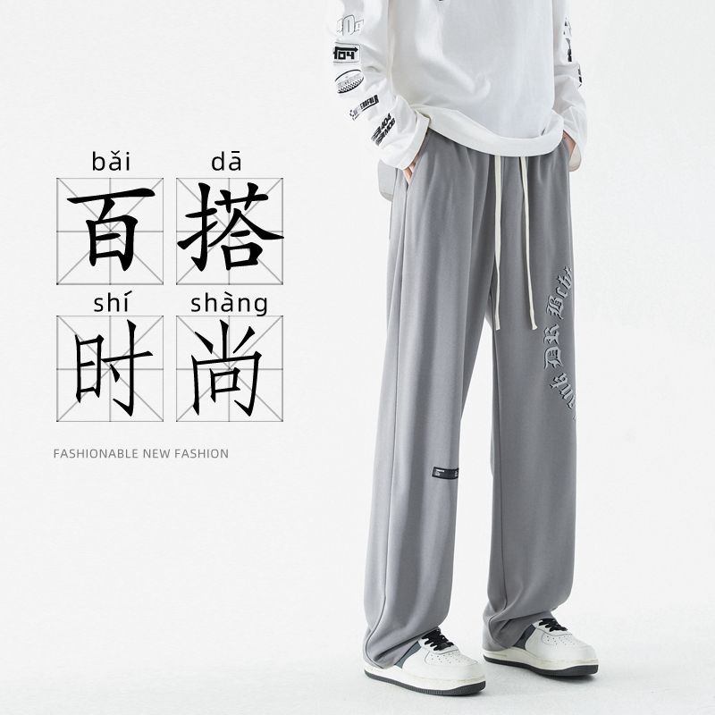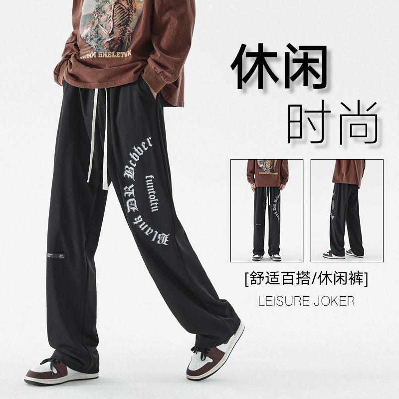 美式男士潮牌休闲裤夏季直筒长裤运动裤高级感宽松复古潮流ins裤