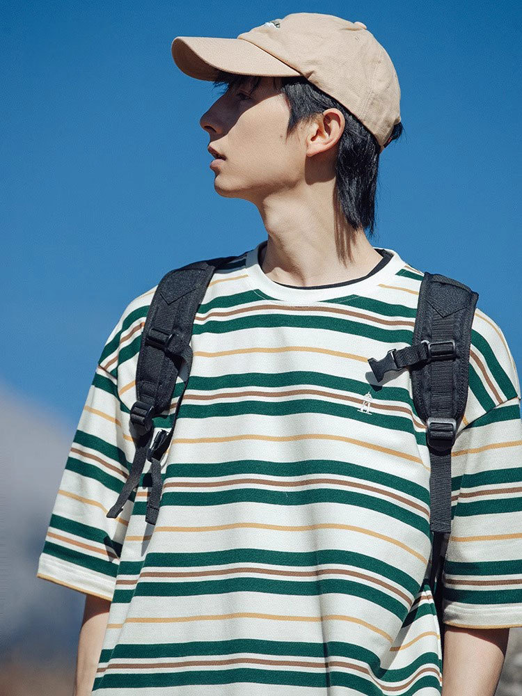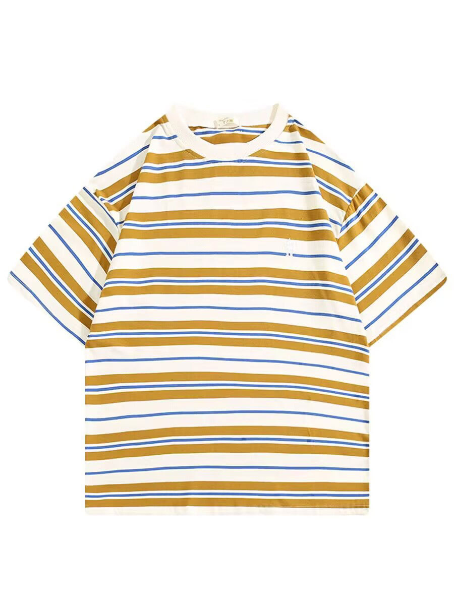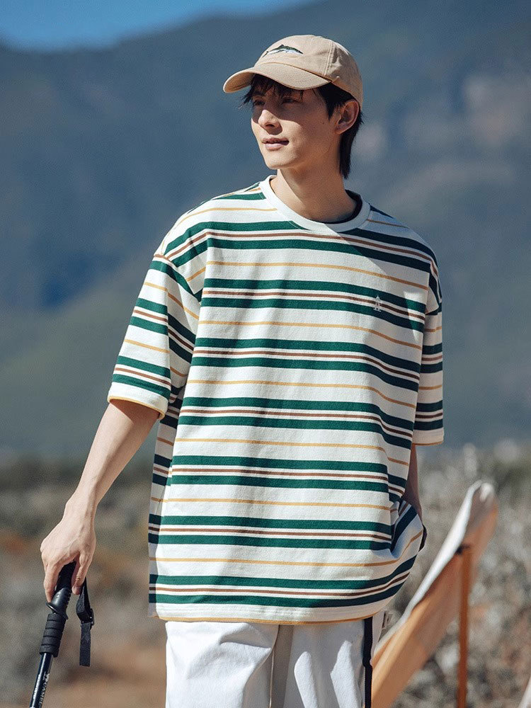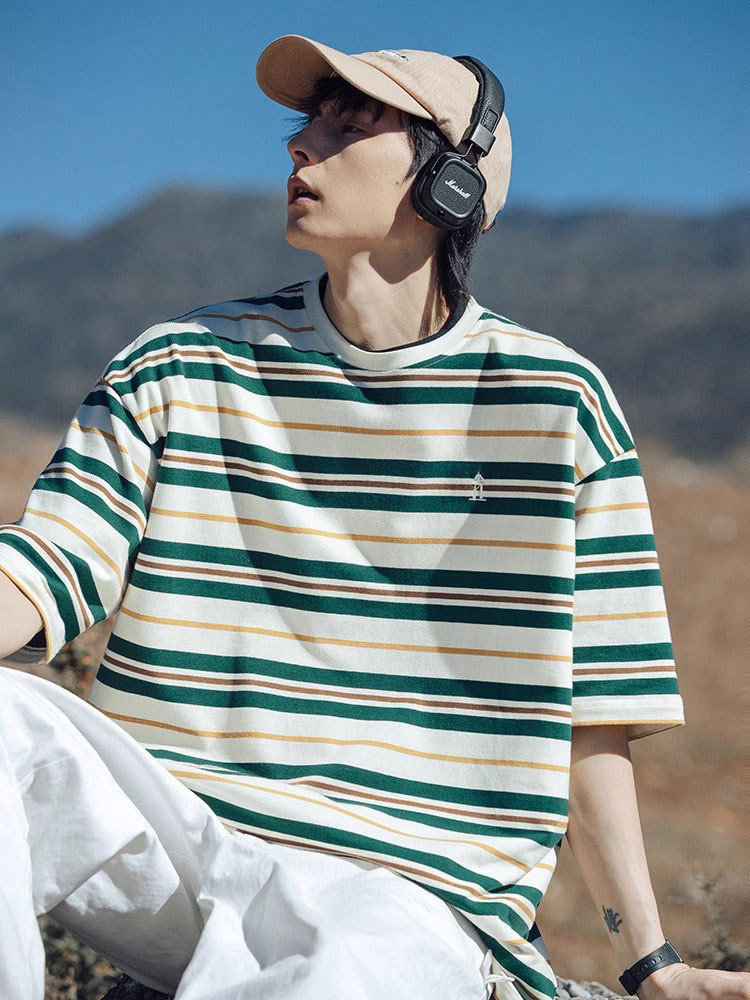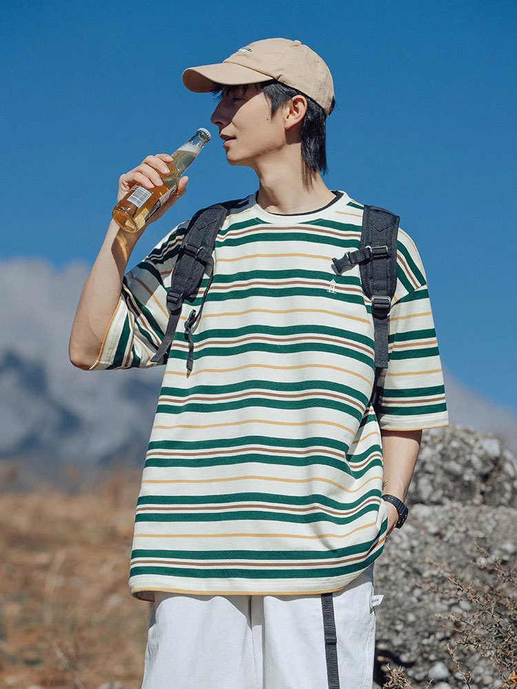 男士撞色条纹t恤男短袖男款潮牌夏季衣服男装新款上衣体恤衫