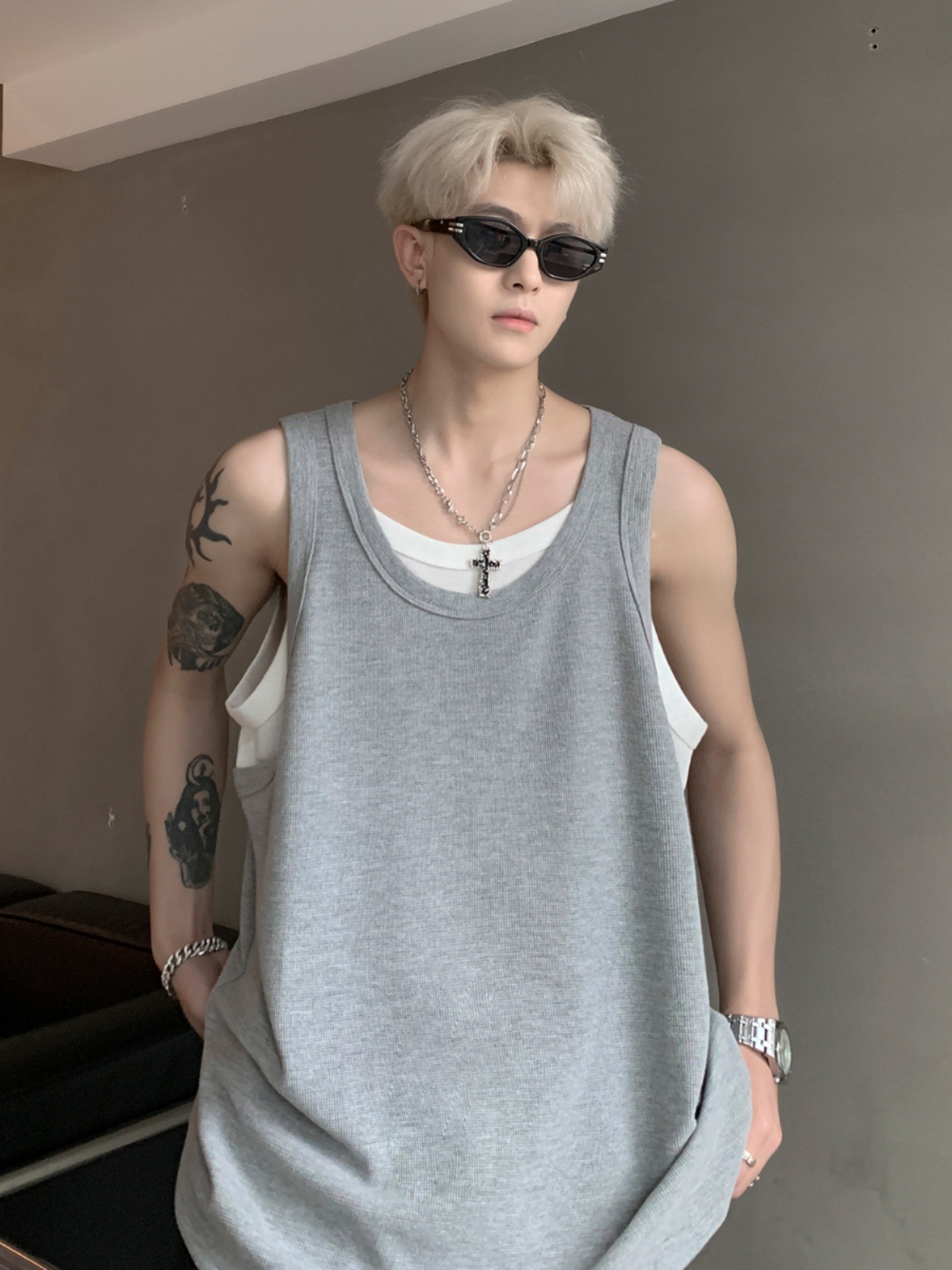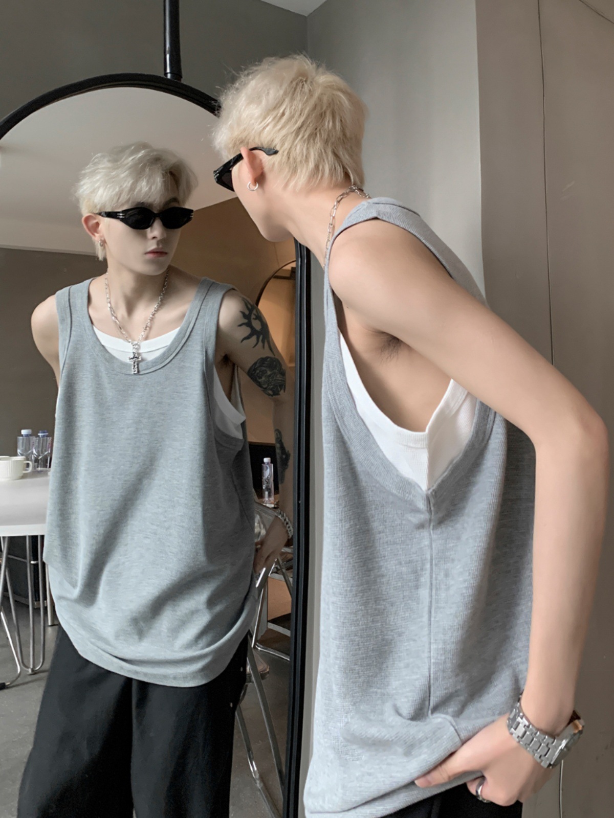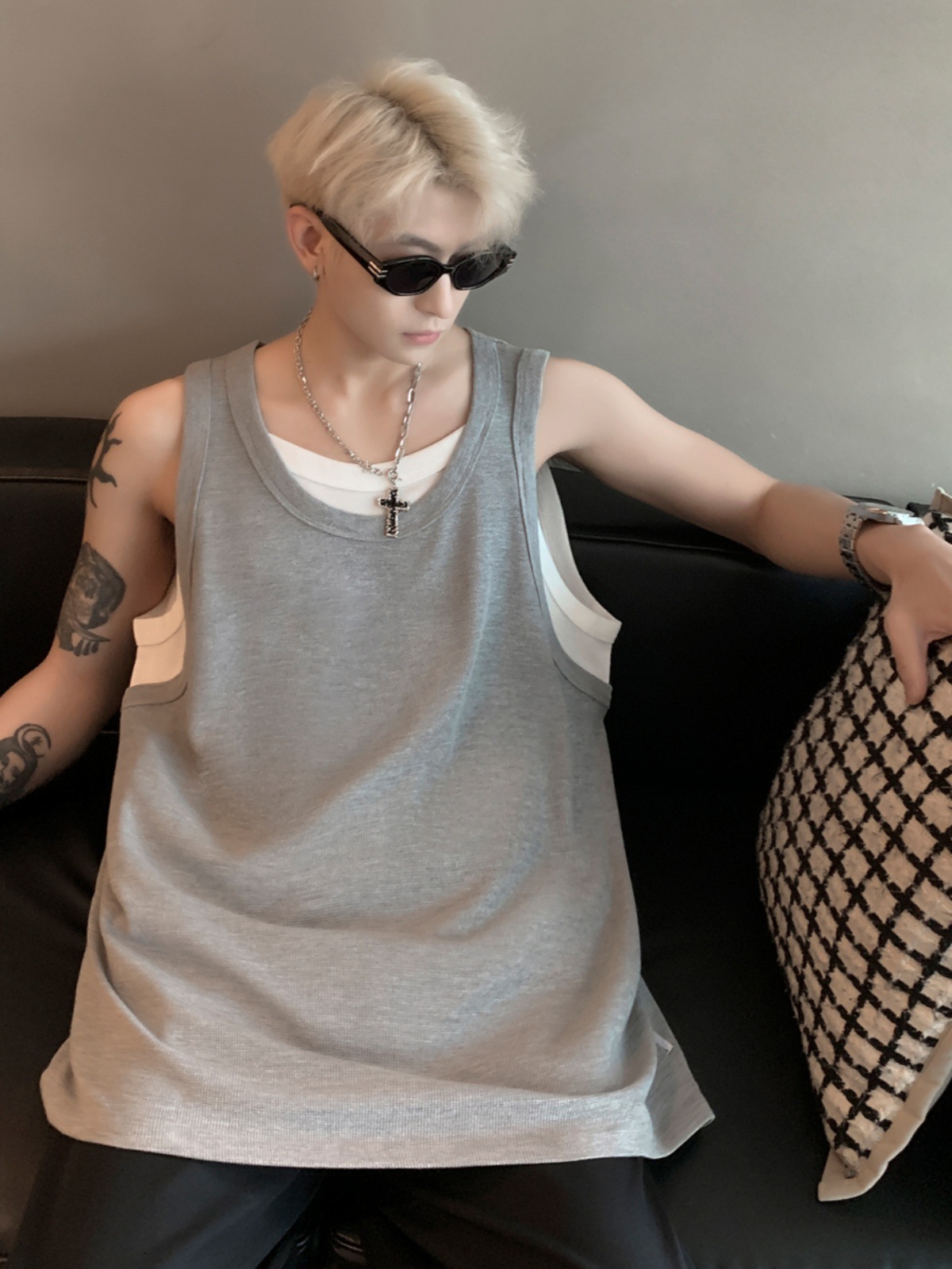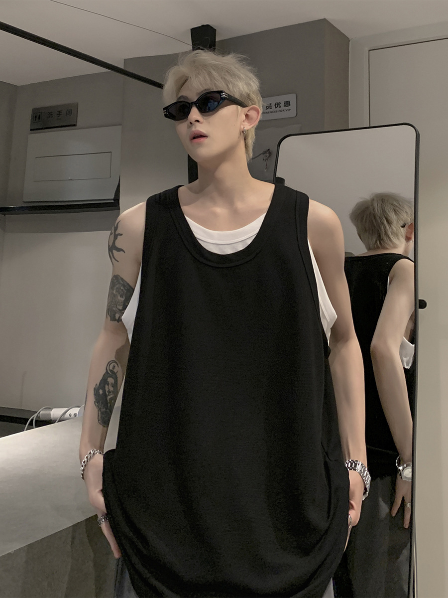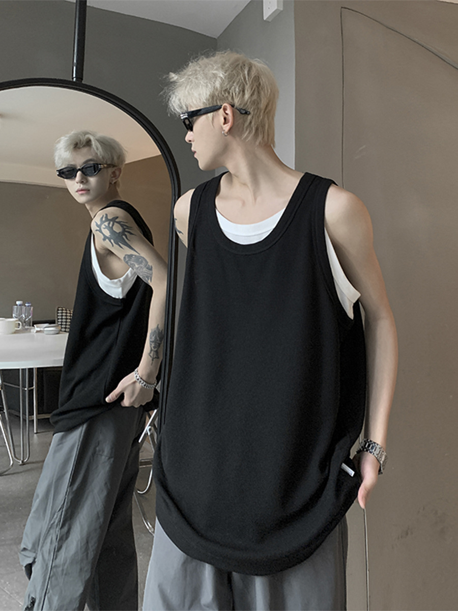 假两件坎肩背心男款夏季潮流痞帅美式无袖男t恤宽松健身上衣外穿