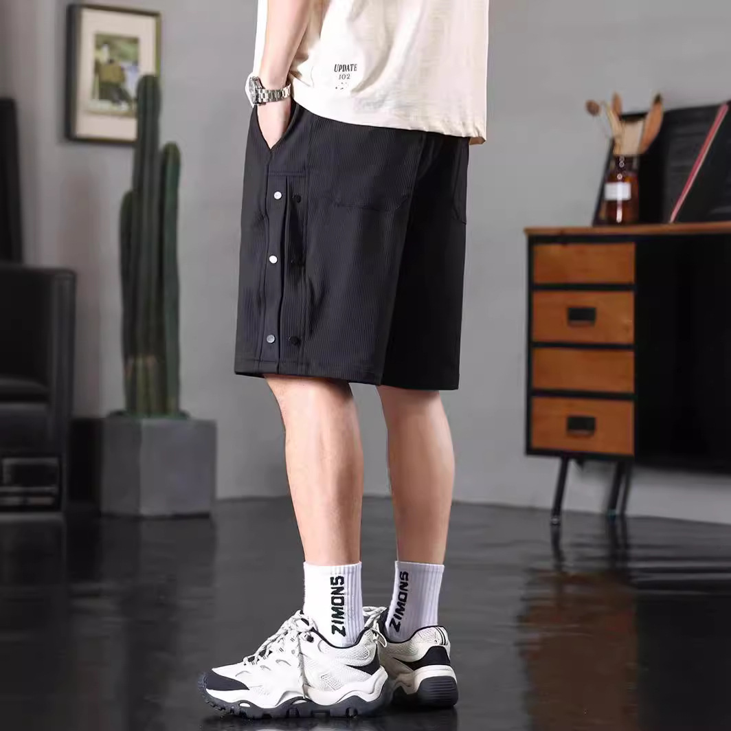 设计感排扣休闲短裤男士夏季冰丝针织运动卫裤宽松直筒五分中裤男