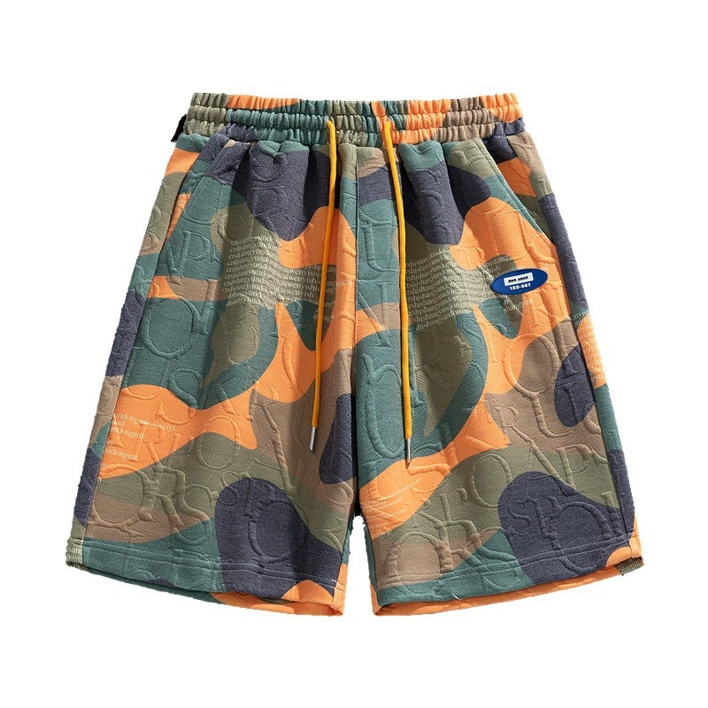 夏季新款高品质迷彩短裤字母五分裤青少年时尚潮流印花沙滩裤
