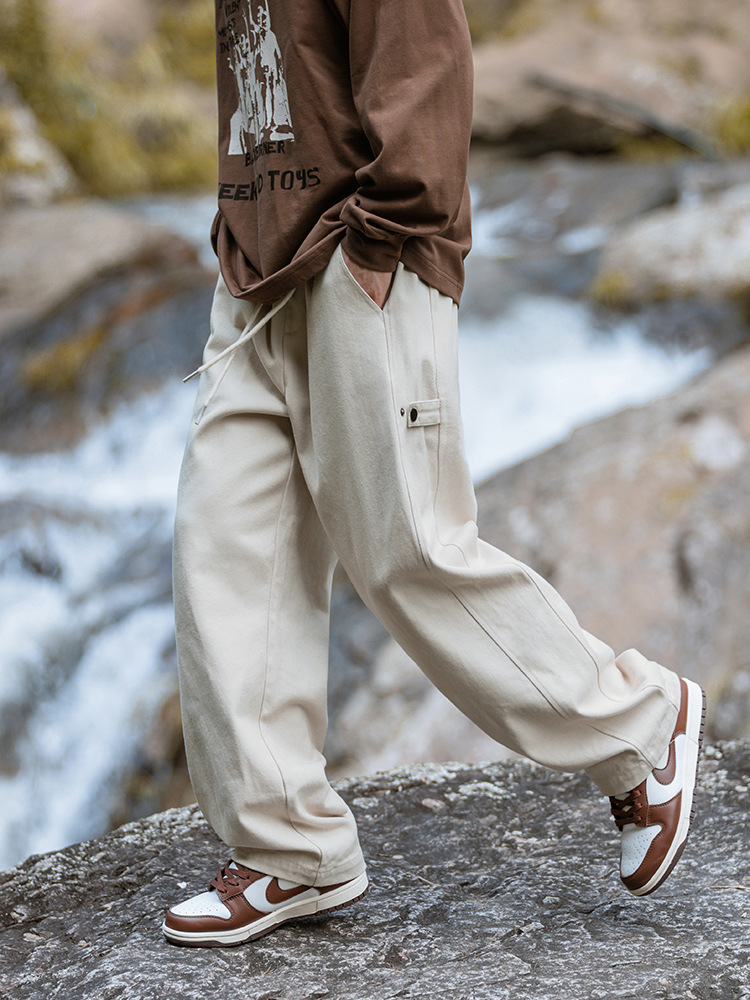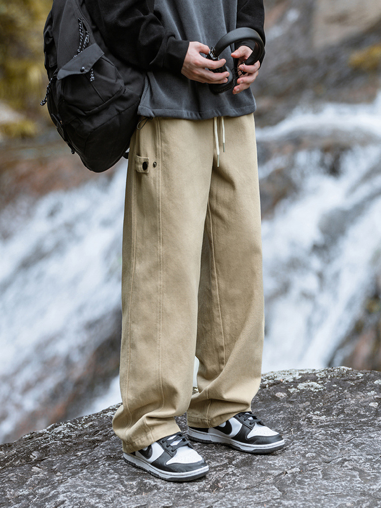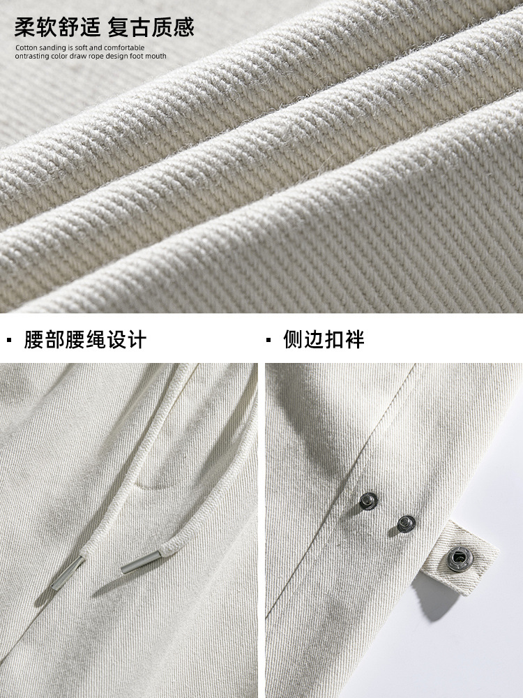 纯棉斜纹质感休闲裤男秋冬新款可调节设计拼接复古潮牌宽松长裤子