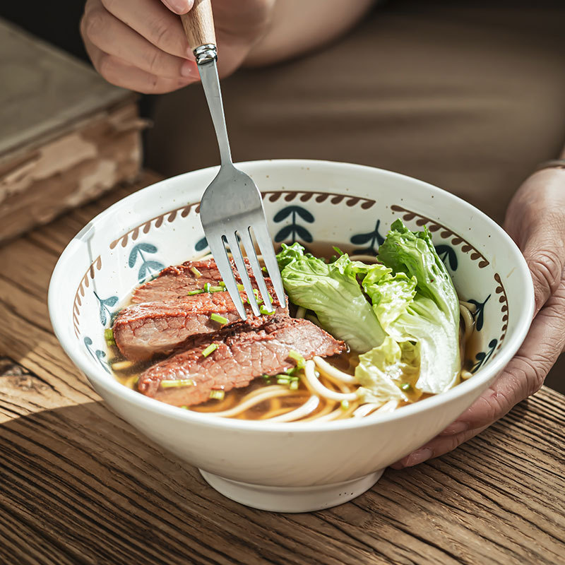 手绘小花斗笠碗家用陶瓷碗日式感餐具菜碗面碗水果沙拉碗饭碗