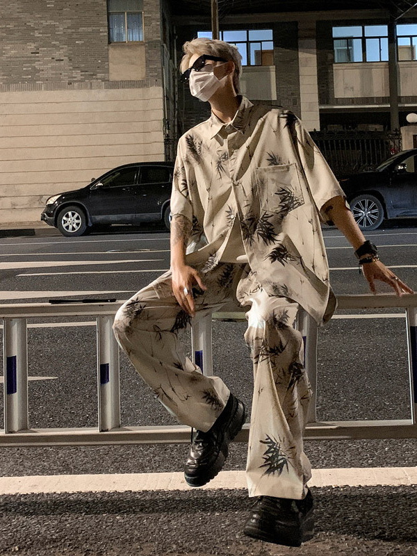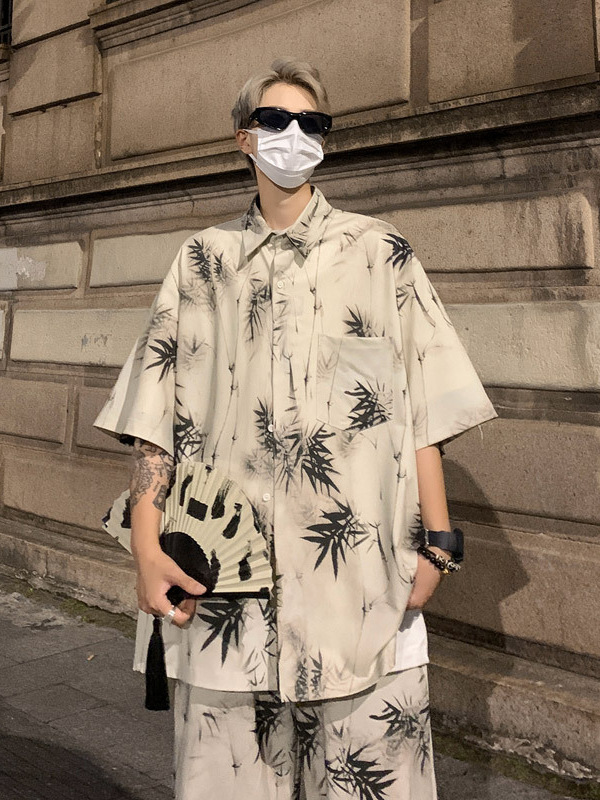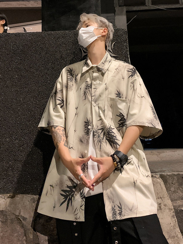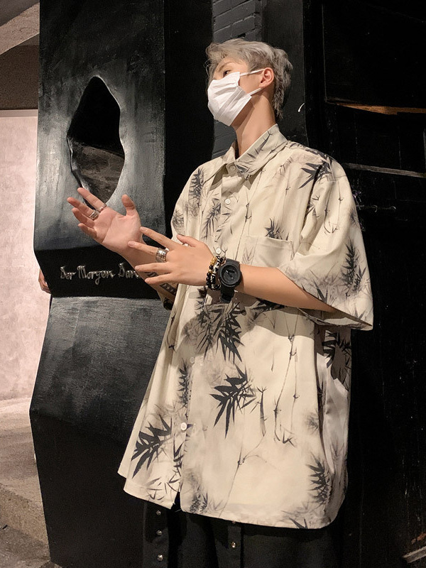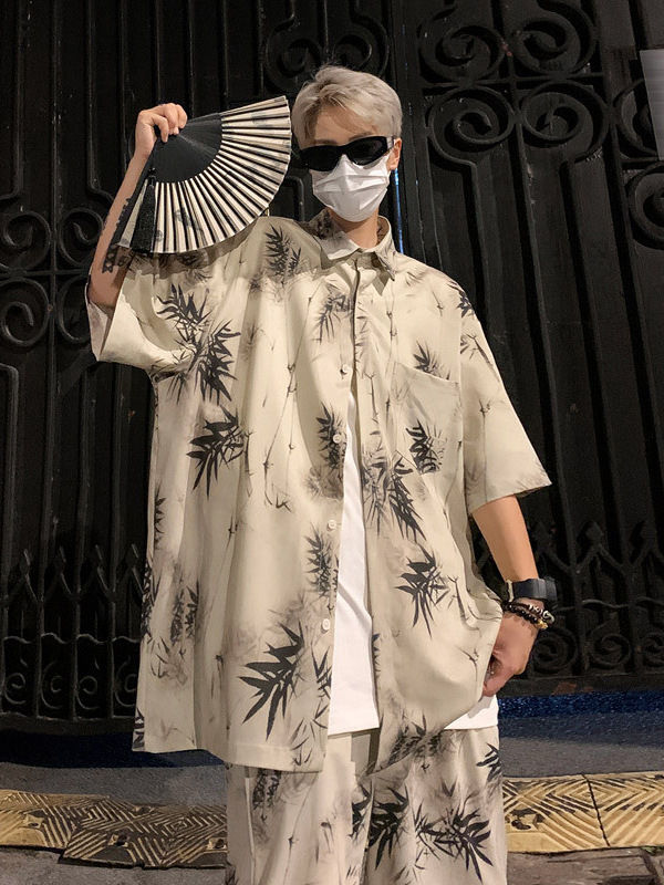 新中式国风冰丝免烫短袖衬衫夏季新款潮牌潮流痞帅设计感高级衬衣