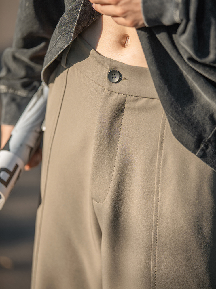 春夏新款垂感侧开叉休闲裤长裤 宽松显瘦空气棉窄版阔腿裤女