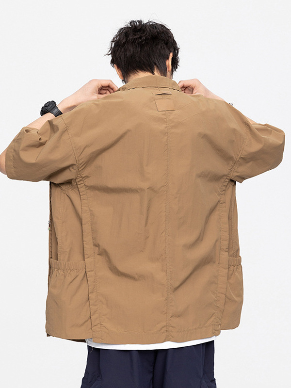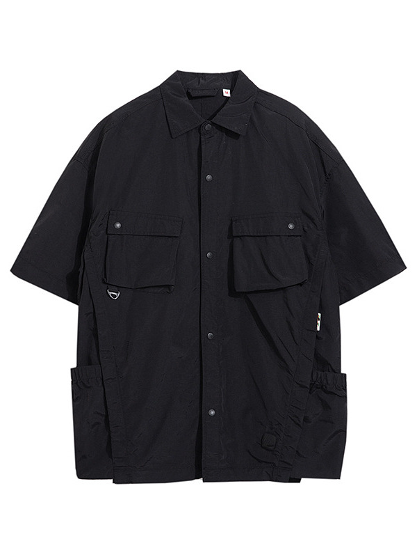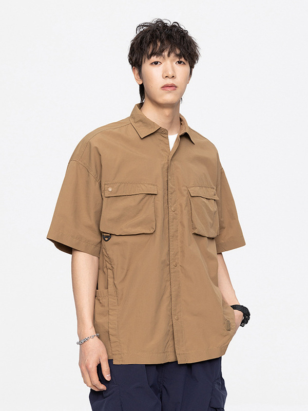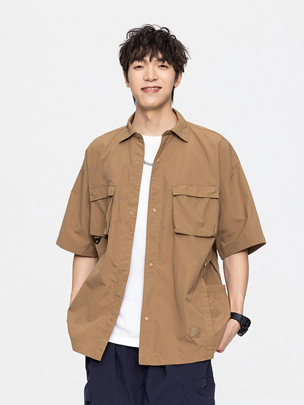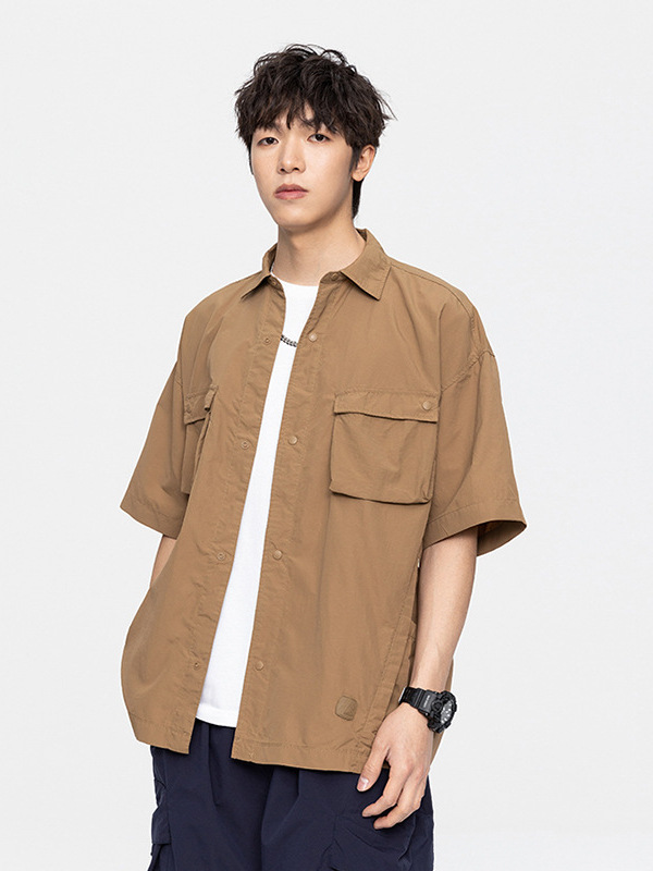夏季新款日系工装速干纯色短袖衬衫潮牌复古宽松休闲百搭上衣
