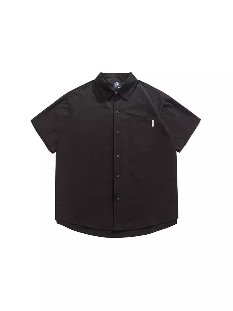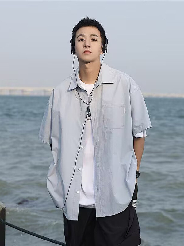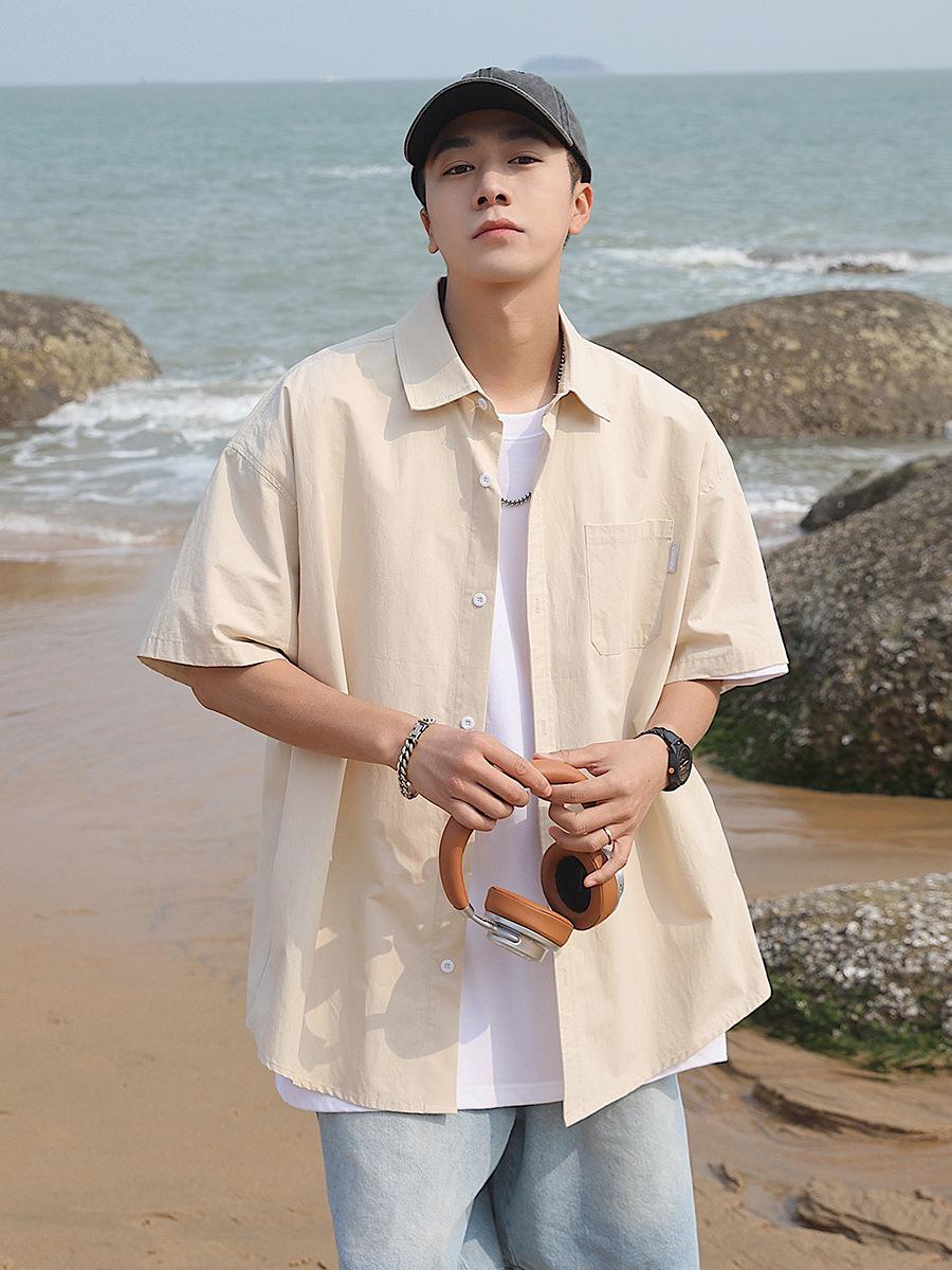 港风简单干净潮牌短袖衬衫男生宽松上衣夏季新款美式休闲半袖衬衣