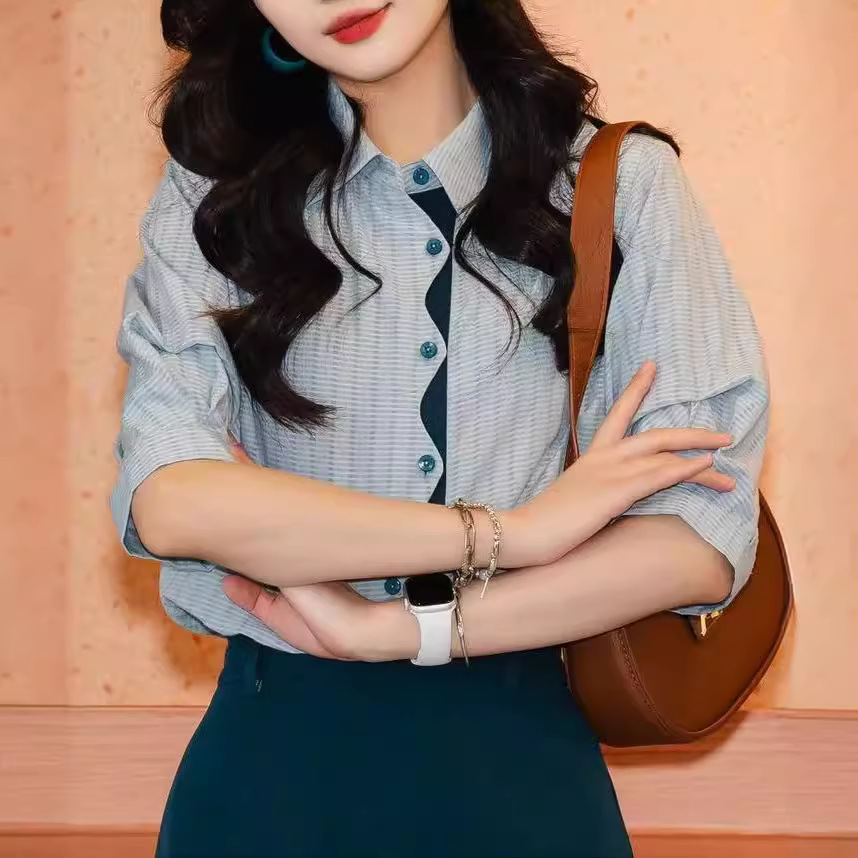 港风复古纯色短袖衬衫女宽松百搭上衣夏季潮流时尚新款