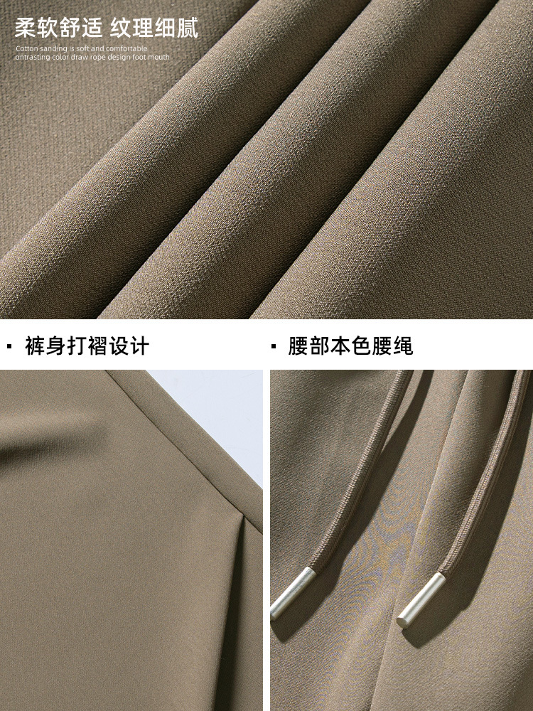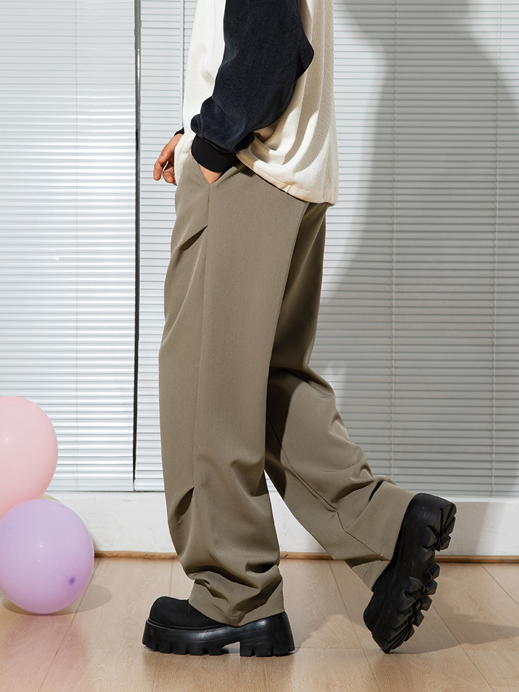 日系打褶设计立体休闲西裤男秋季新款弯刀裤子纯色宽松基础款长裤
