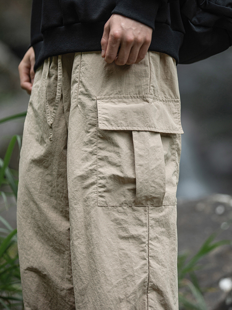 防泼水肌理微皱面料工装休闲裤男秋新款宽松立体贴袋山系户外长裤