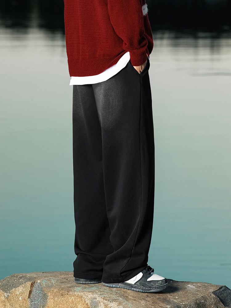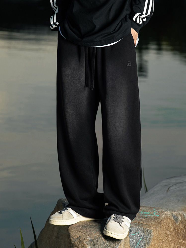 美式重磅洗水卫裤男秋冬新款做旧休闲裤微宽松潮牌字母印花长裤子