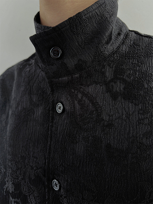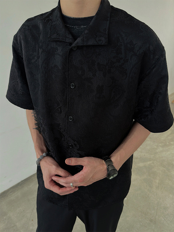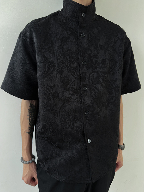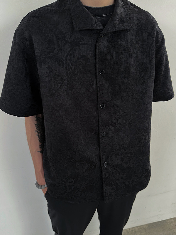 新中式腰果花纹理翻领衬衫男夏季新款小众cleanfit复古休闲衬衫男