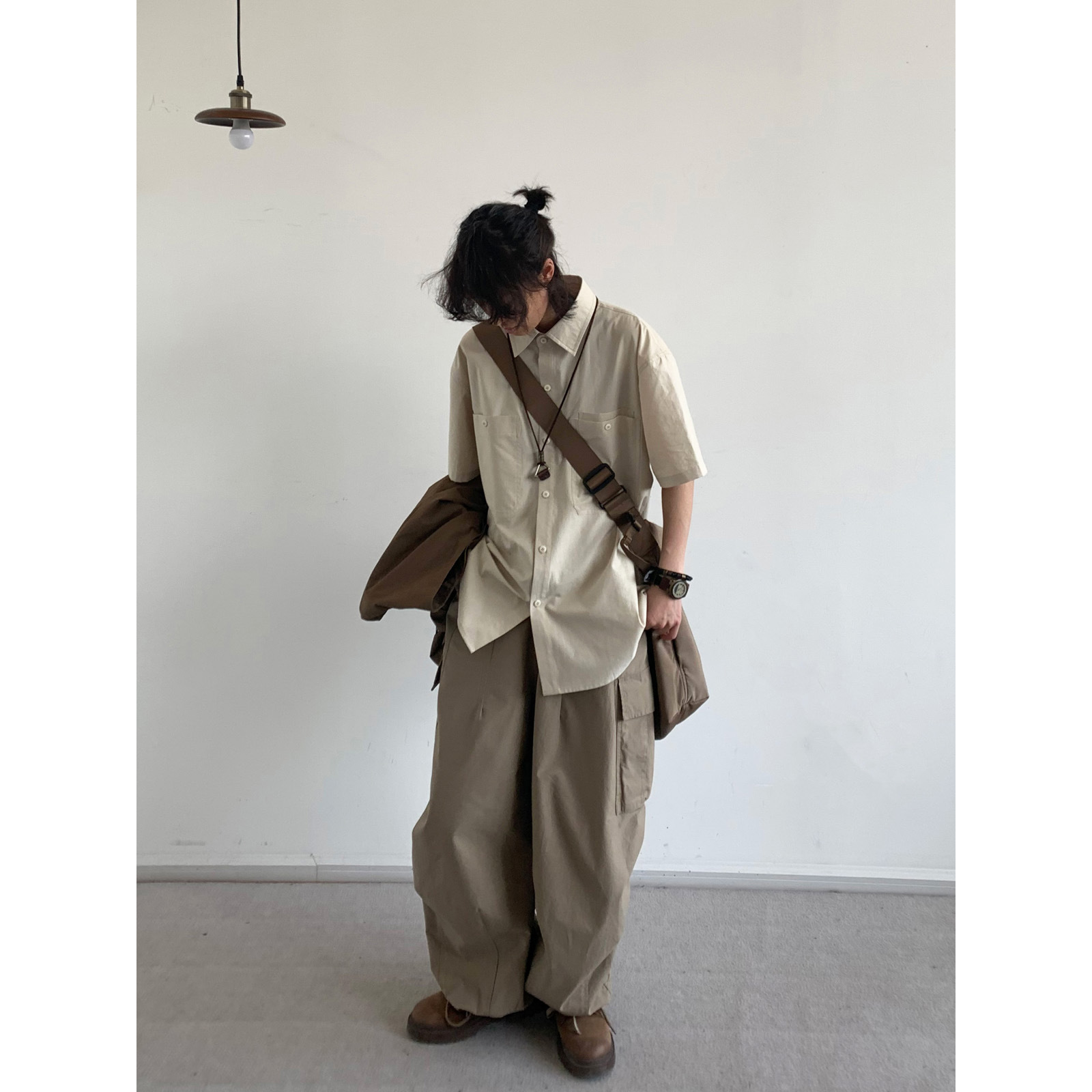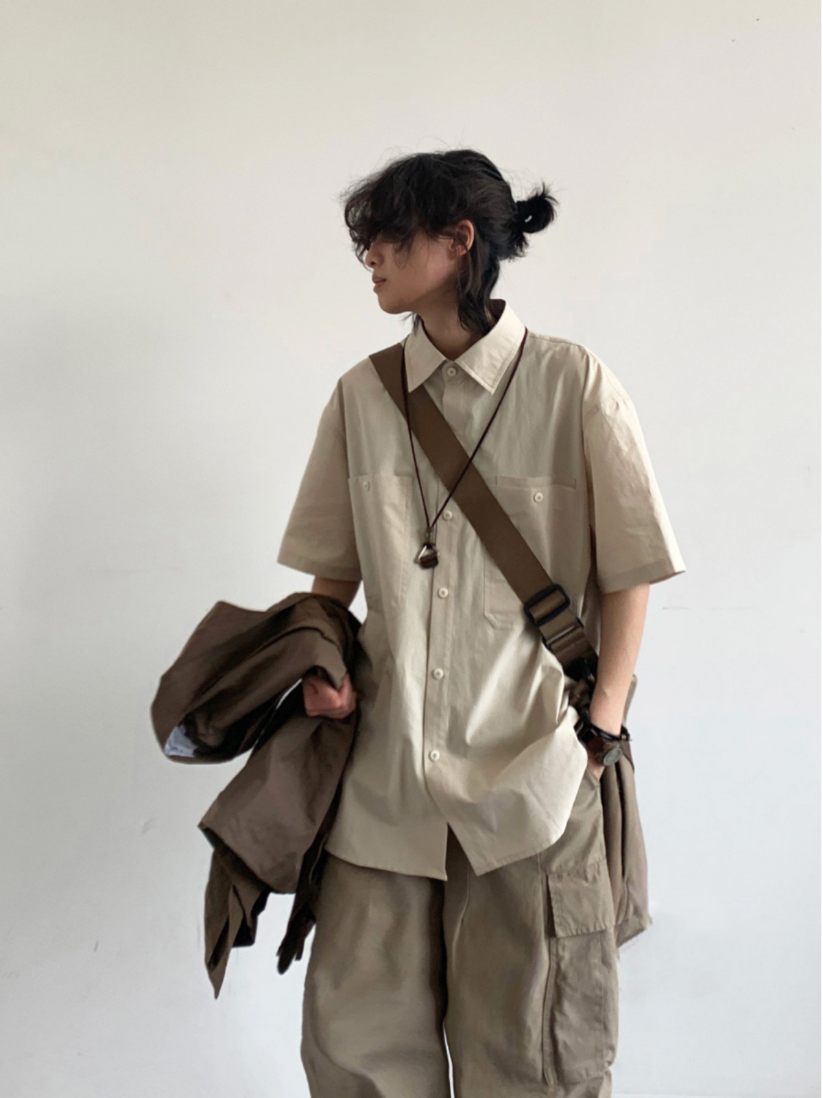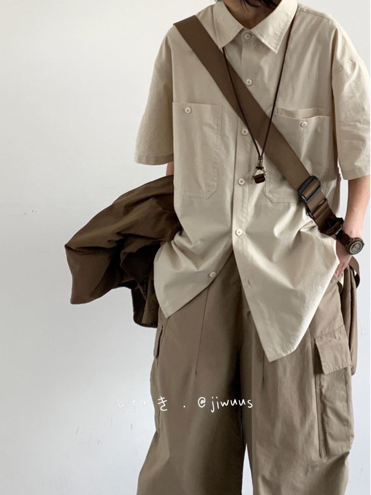 日系复古工装短袖衬衫男夏季新款宽松基础款廓形休闲衬衣上衣