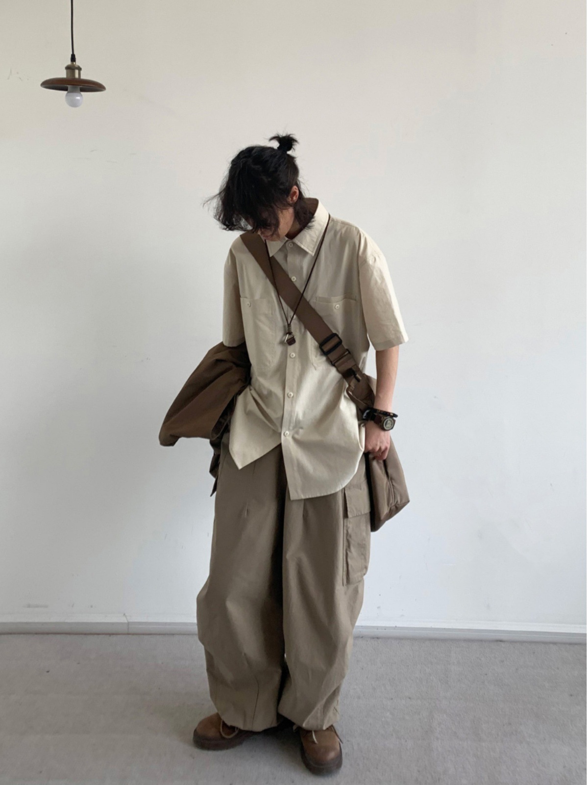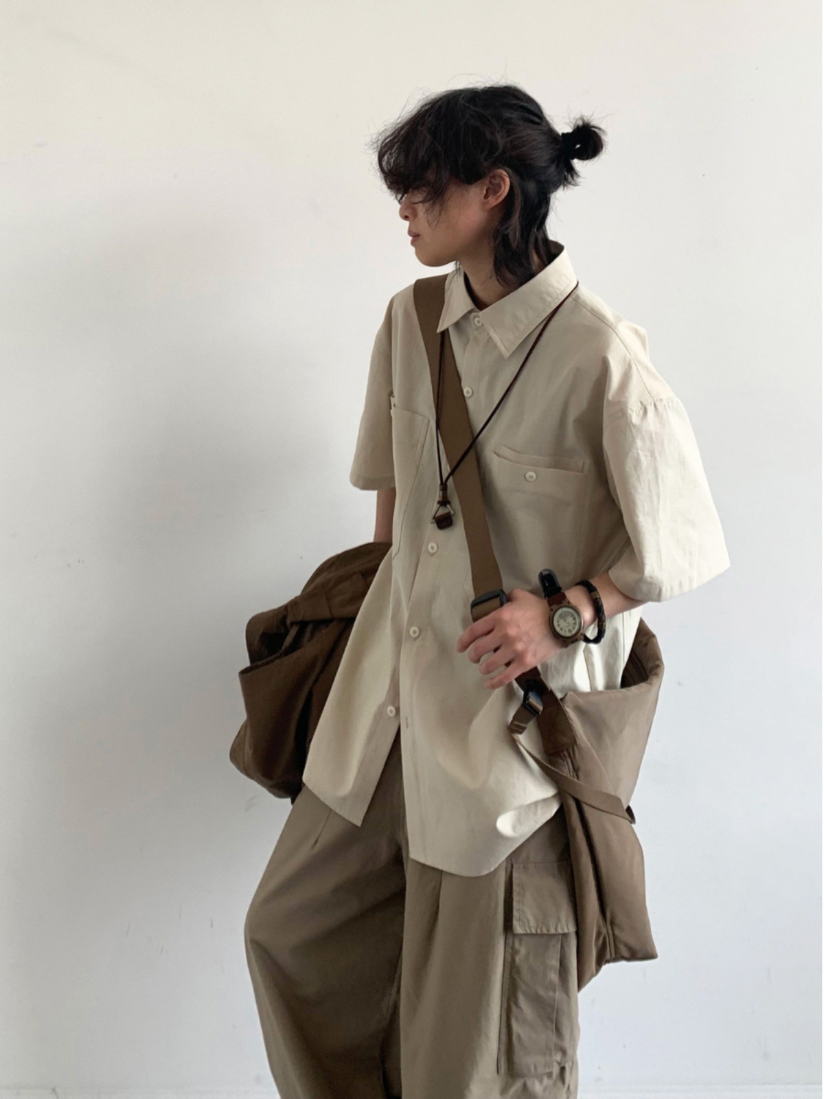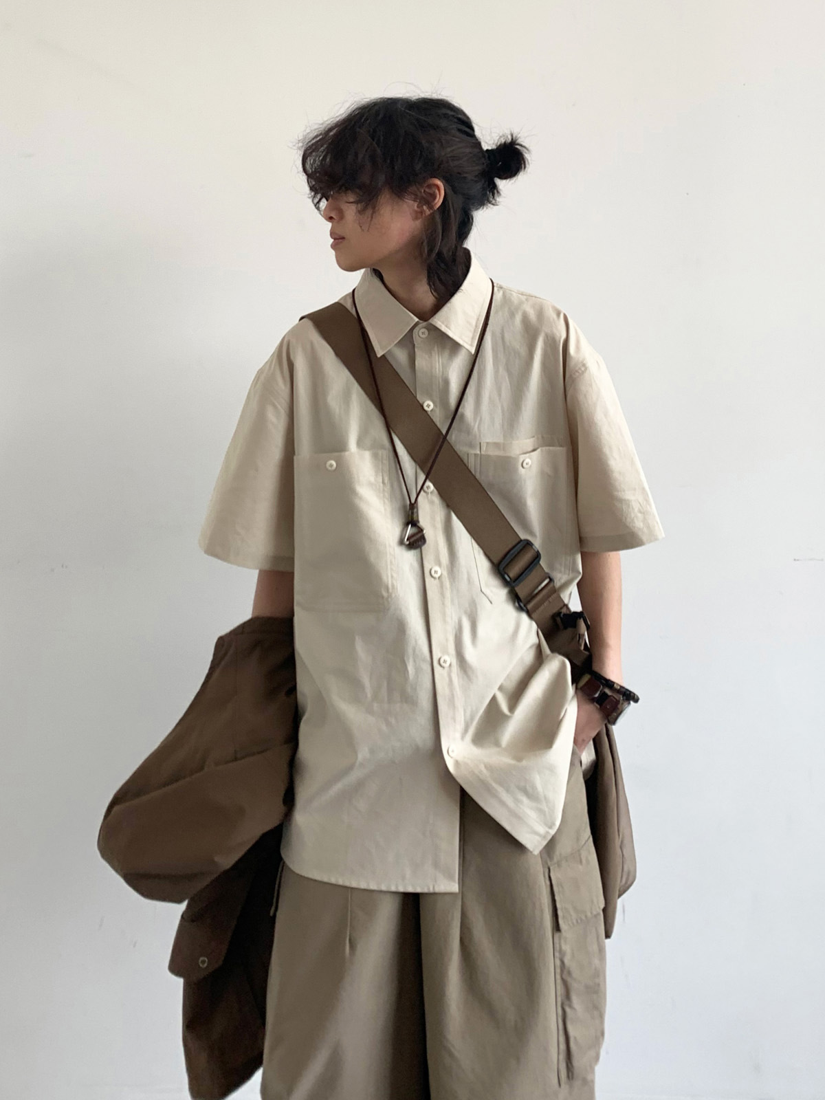 日系复古工装短袖衬衫男夏季新款宽松基础款廓形休闲衬衣上衣